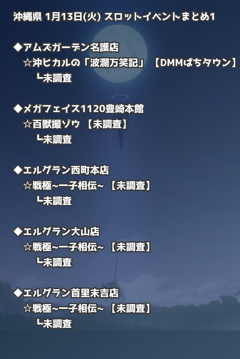 【沖縄県】1月13日(火) パチンコホールイベント取材まとめ記事です。