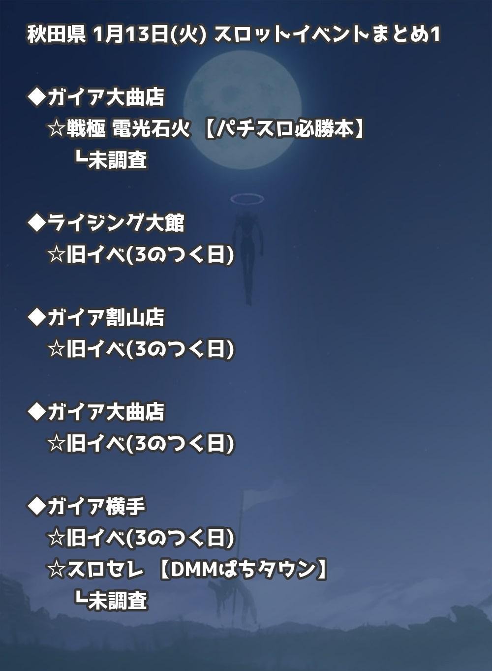 【秋田県】1月13日(火) パチンコホールイベント取材まとめ記事です。