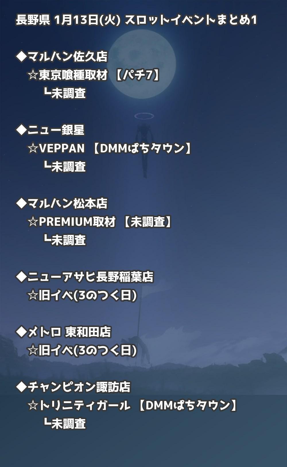 【長野県】1月13日(火) パチンコホールイベント取材まとめ記事です。