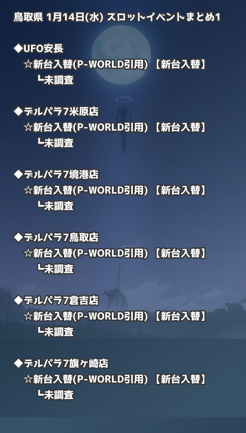 📊 鳥取県 1月14日(水) 勝てるパチンコ・スロット取材店舗一覧|おすすめ順