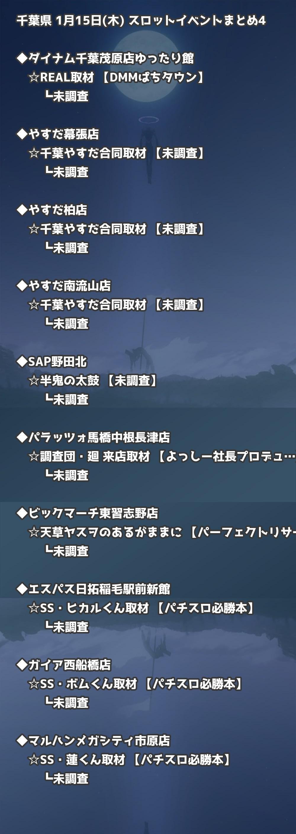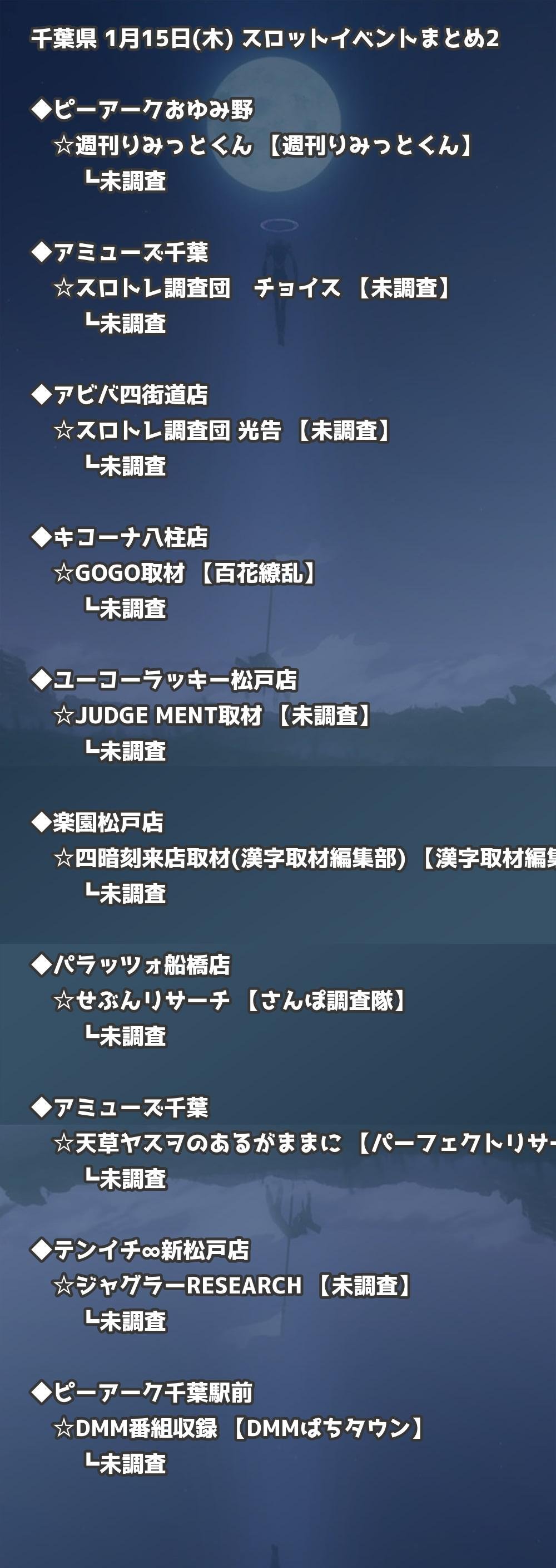 📊 千葉県 1月15日(木) 勝てるパチンコ・スロット取材店舗一覧|おすすめ順