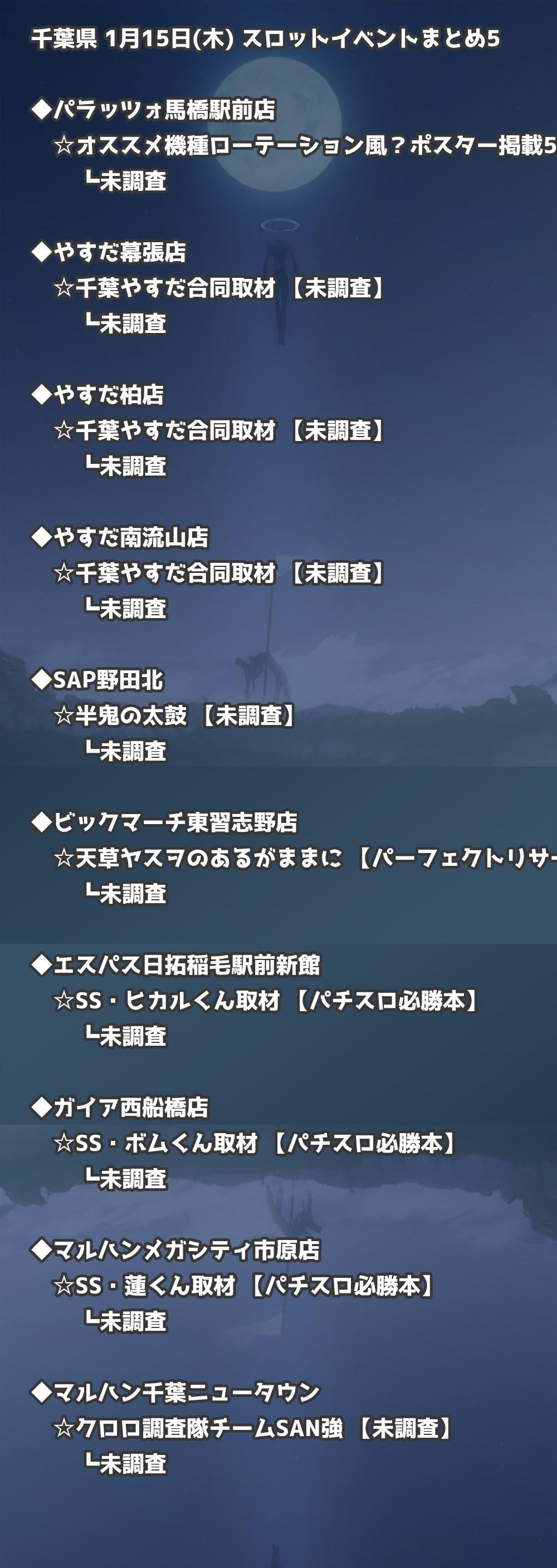 【千葉県】1月15日(木) パチンコホールイベント取材まとめ記事です。