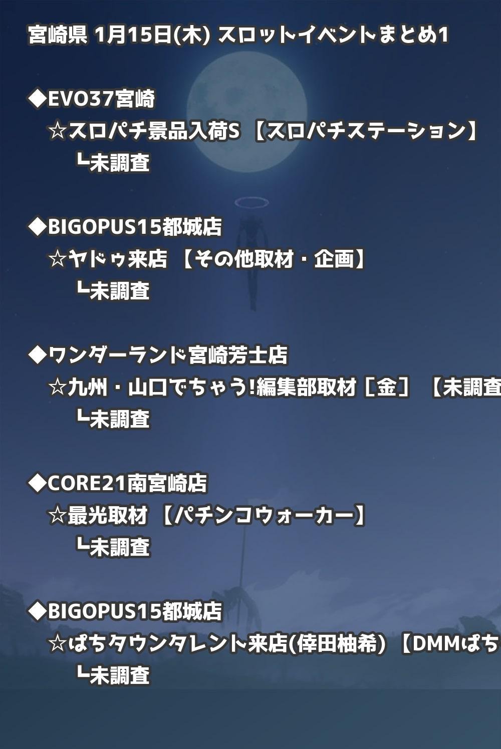 【宮崎県】1月15日(木) パチンコホールイベント取材まとめ記事です。