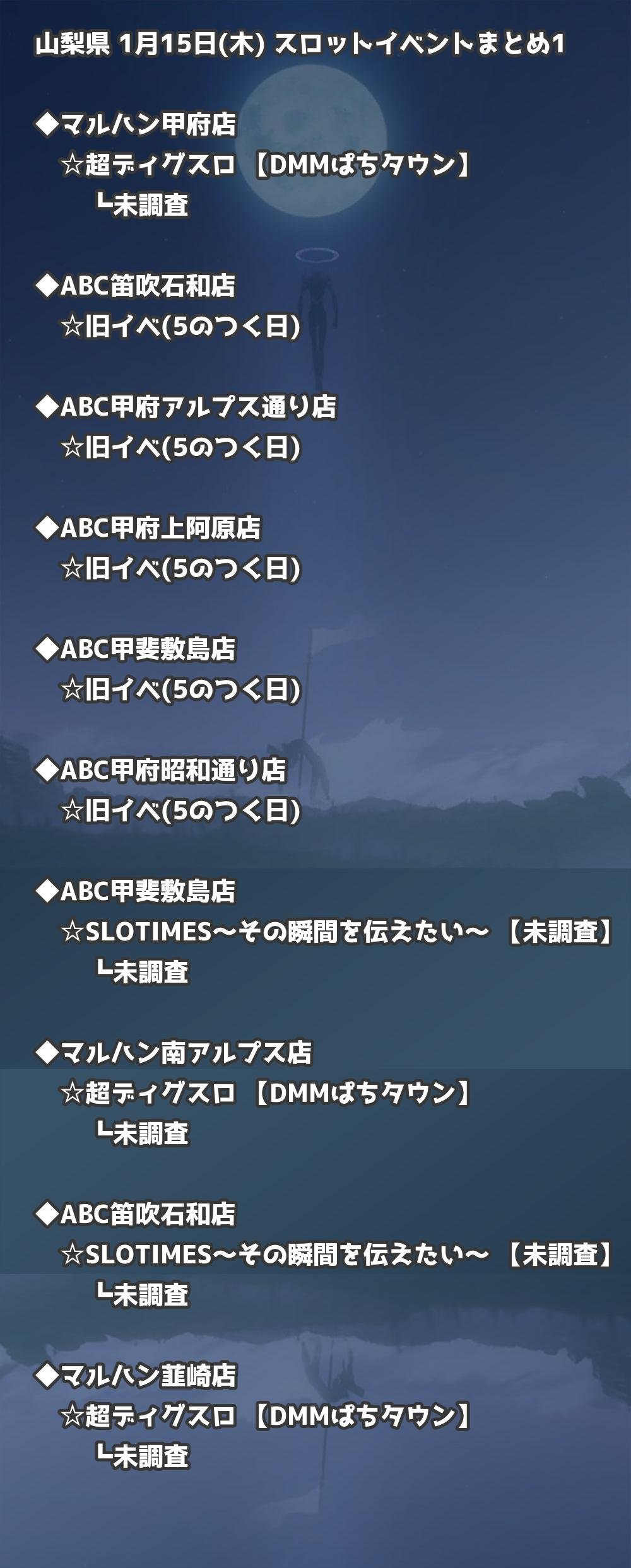 【山梨県】1月15日(木) パチンコホールイベント取材まとめ記事です。