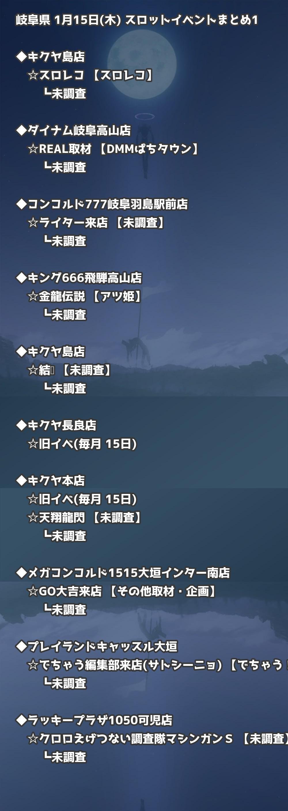 【岐阜県】1月15日(木) パチンコホールイベント取材まとめ記事です。