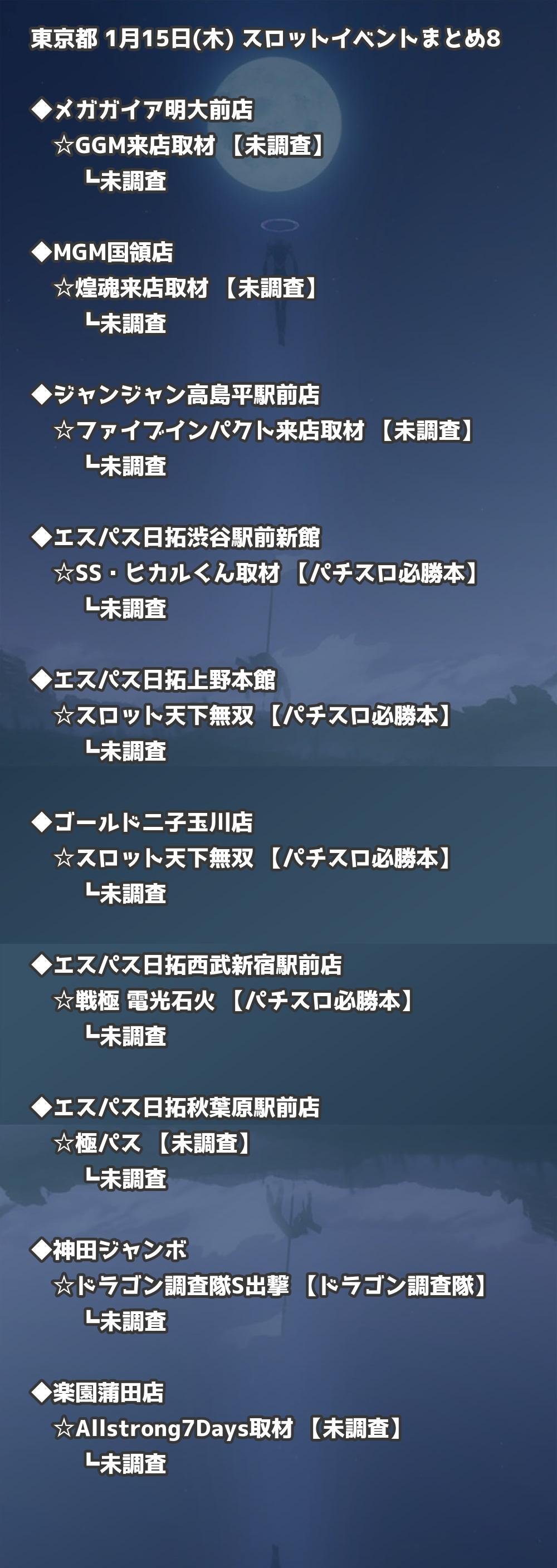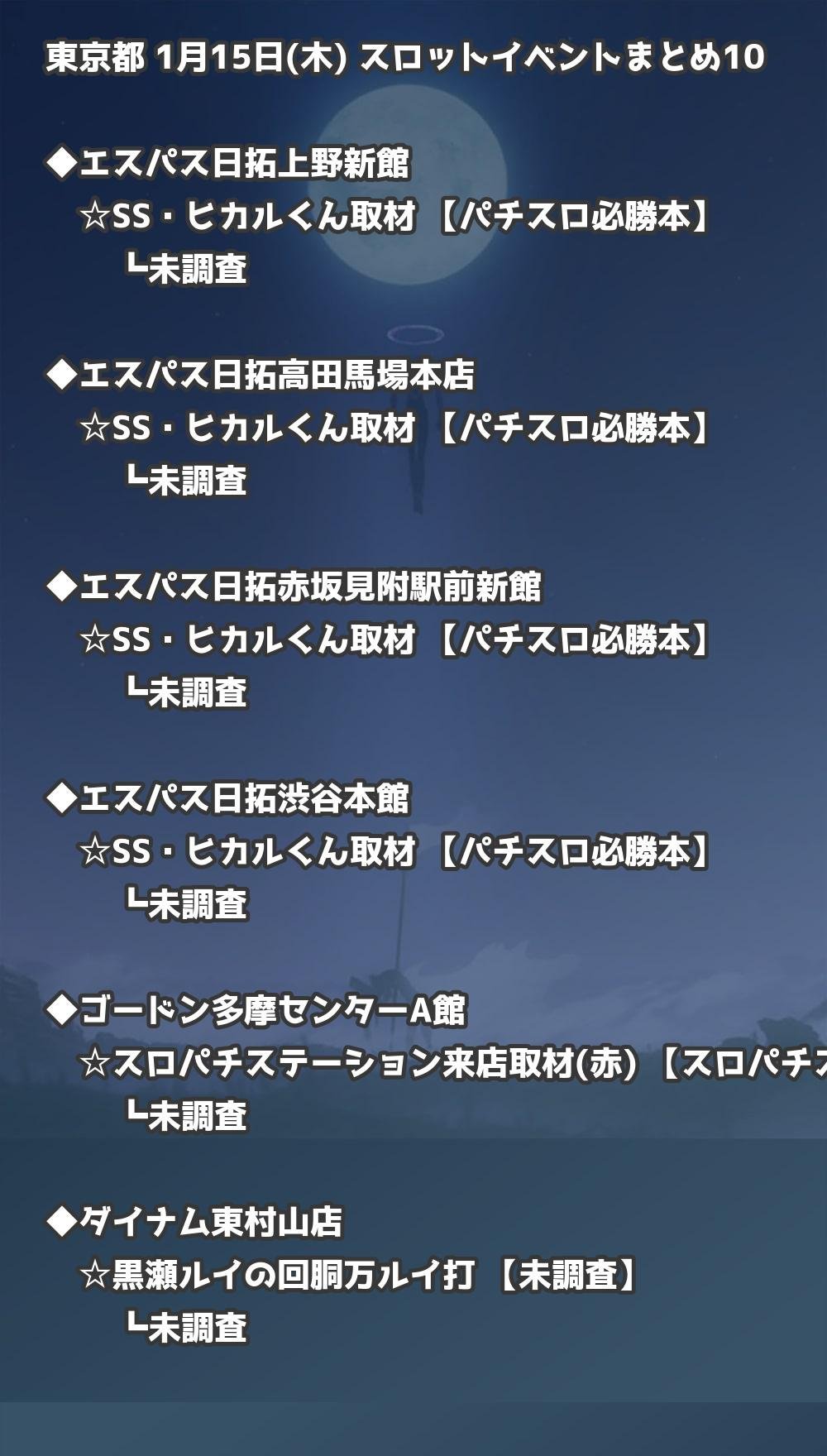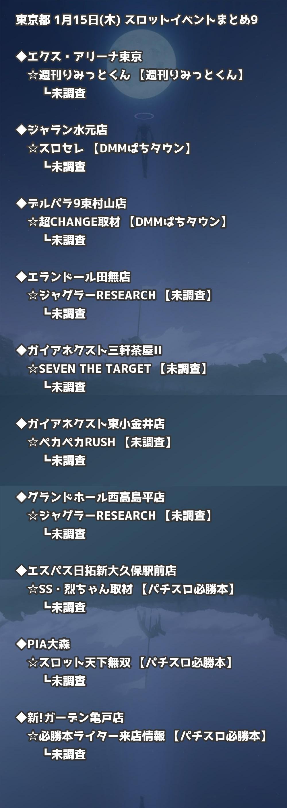 📊 東京都 1月15日(木) 勝てるパチンコ・スロット取材店舗一覧|おすすめ順