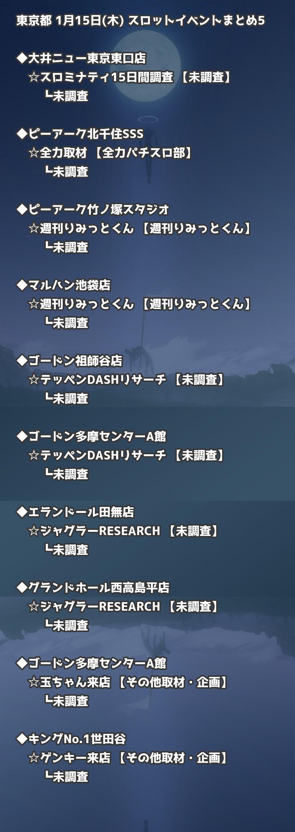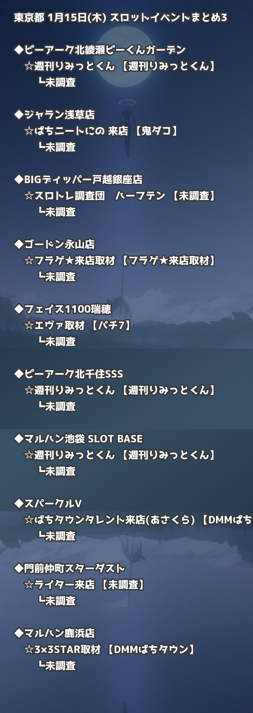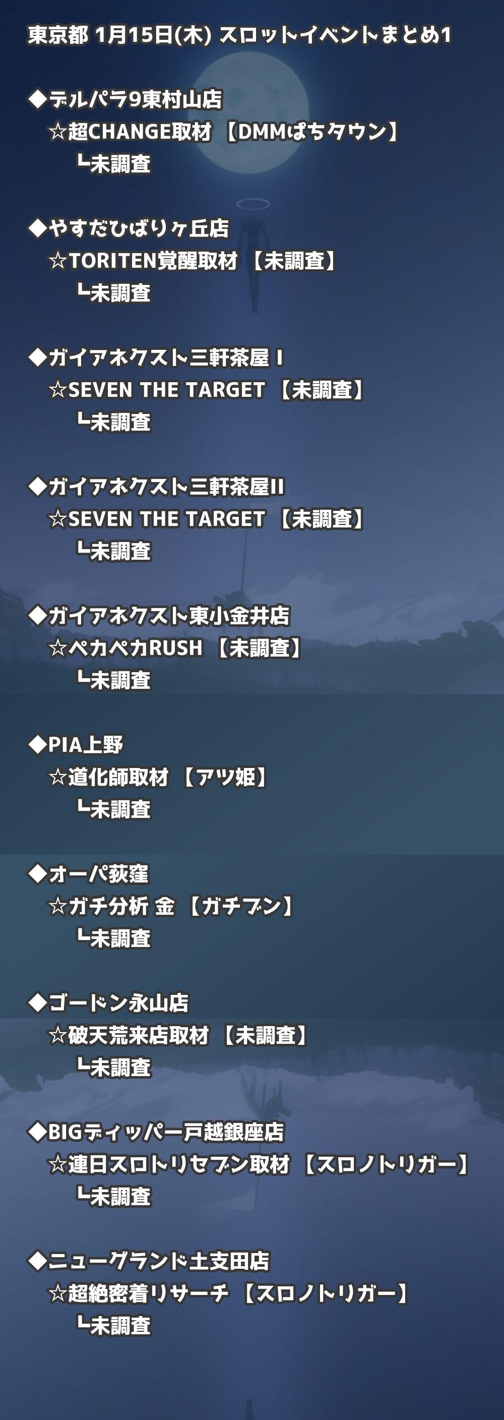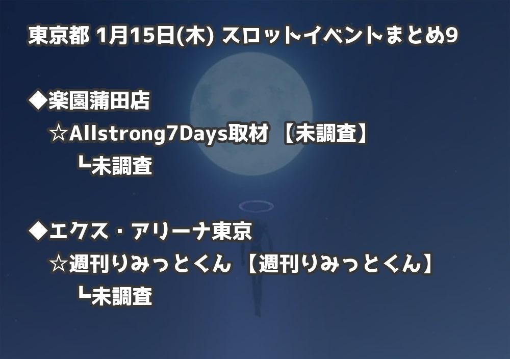 📊 東京都 1月15日(木) 勝てるパチンコ・スロット取材店舗一覧|おすすめ順