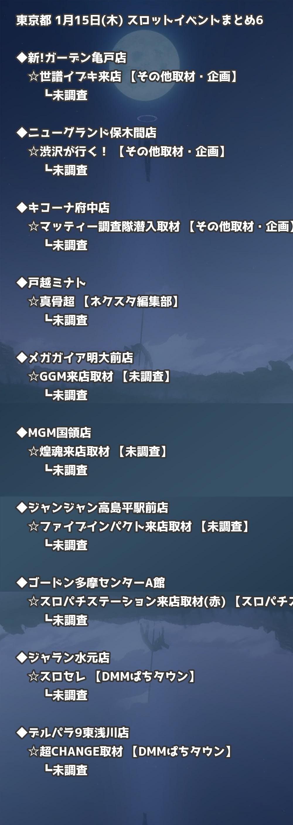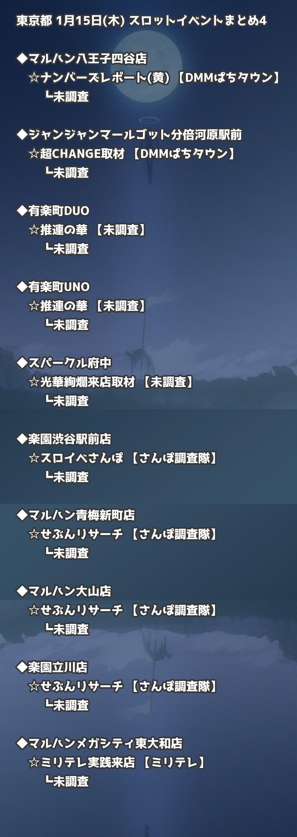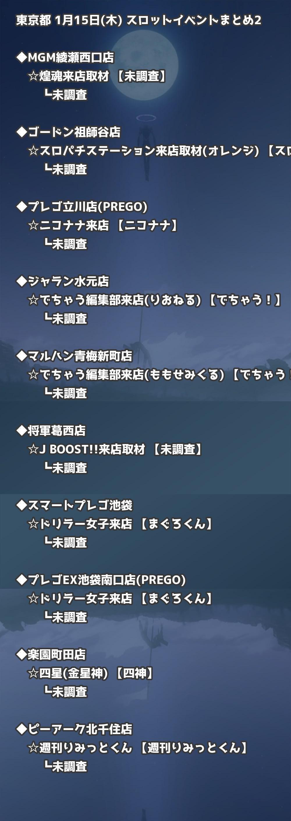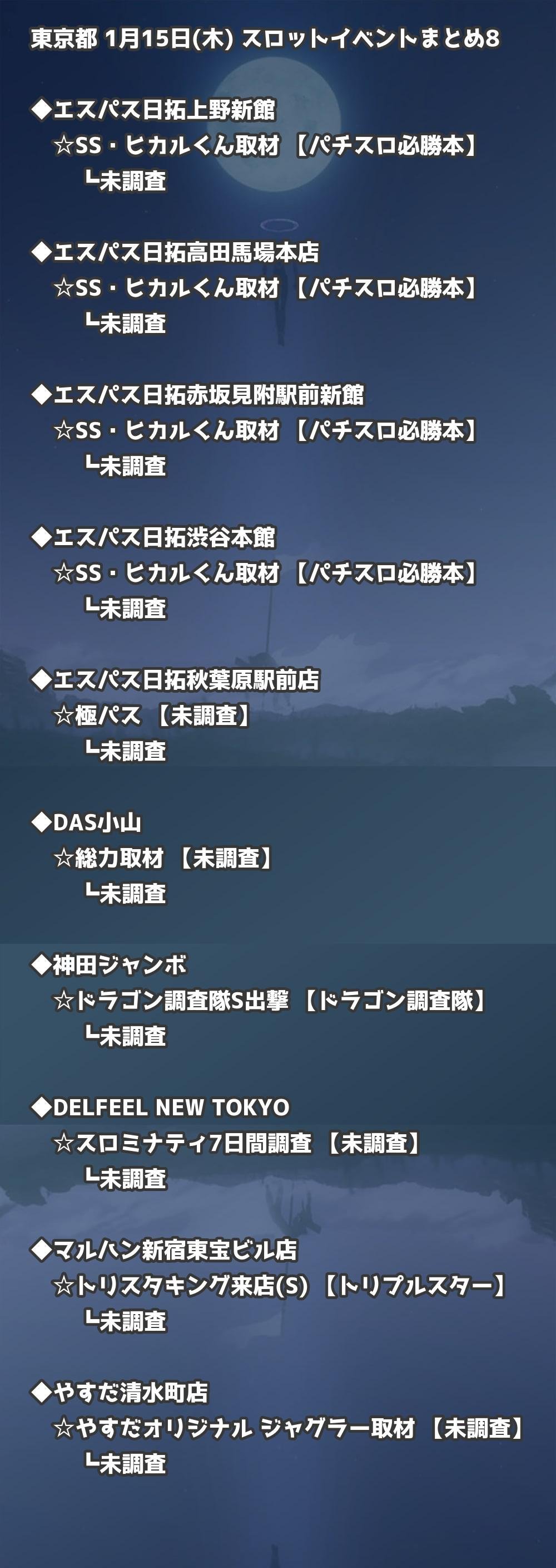 📊 東京都 1月15日(木) 勝てるパチンコ・スロット取材店舗一覧|おすすめ順