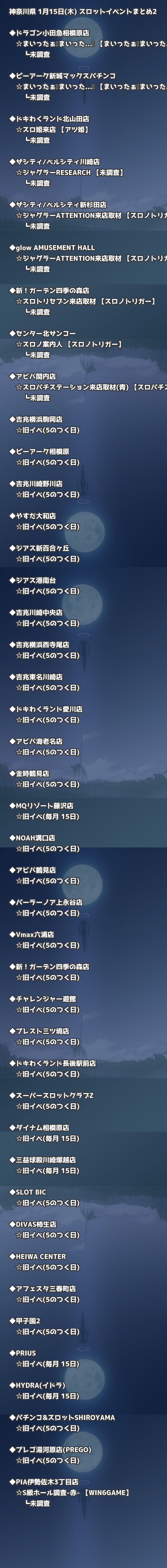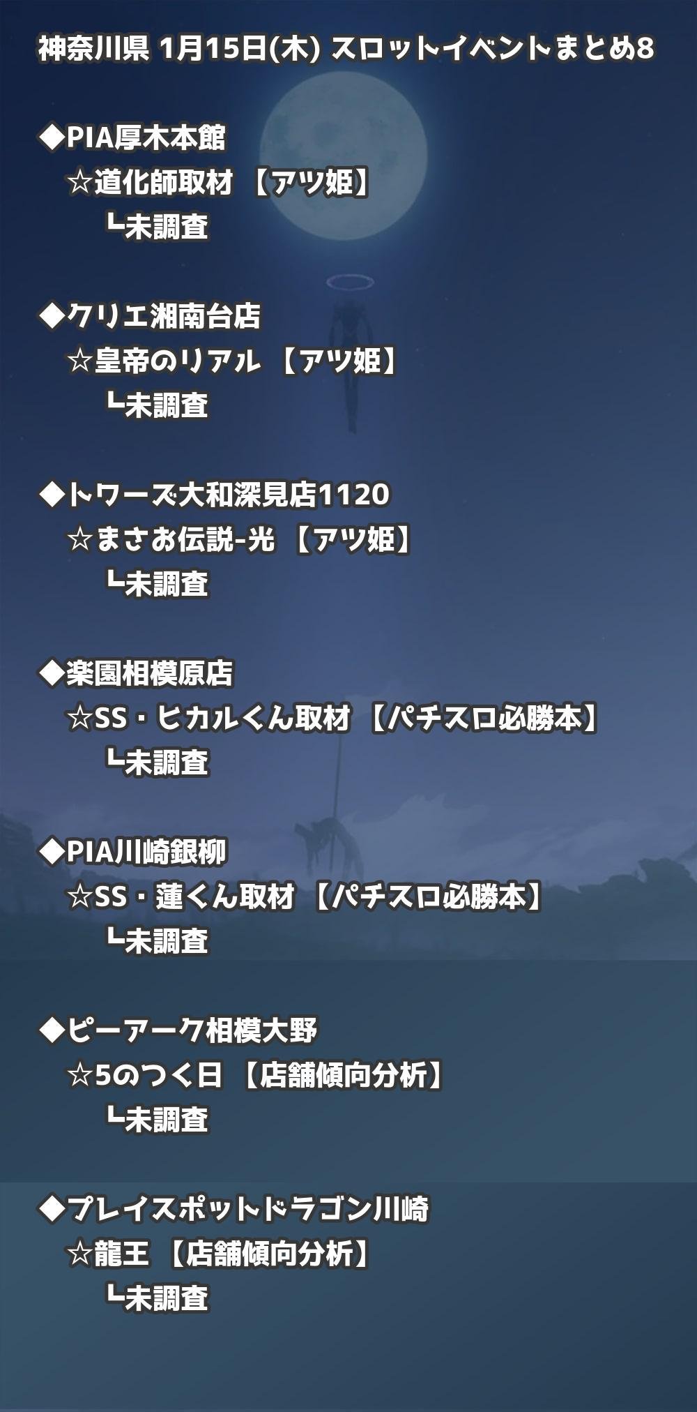 📊 神奈川県 1月15日(木) 勝てるパチンコ・スロット取材店舗一覧|おすすめ順
