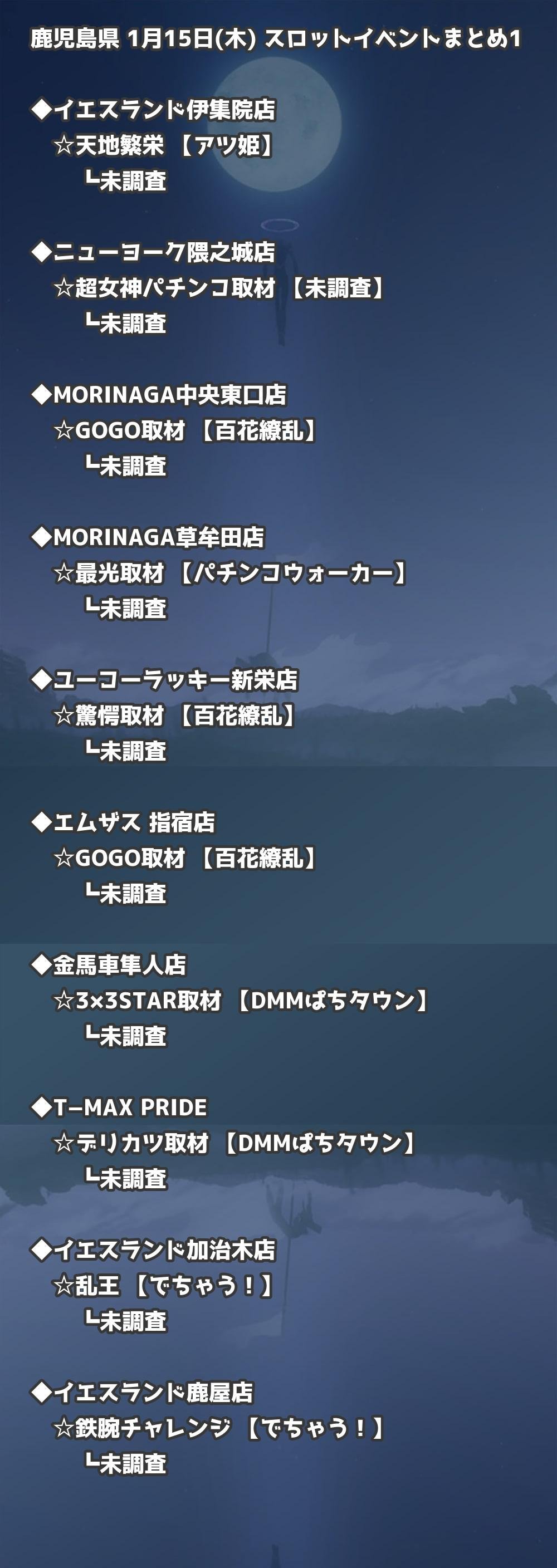 【鹿児島県】1月15日(木) パチンコホールイベント取材まとめ記事です。