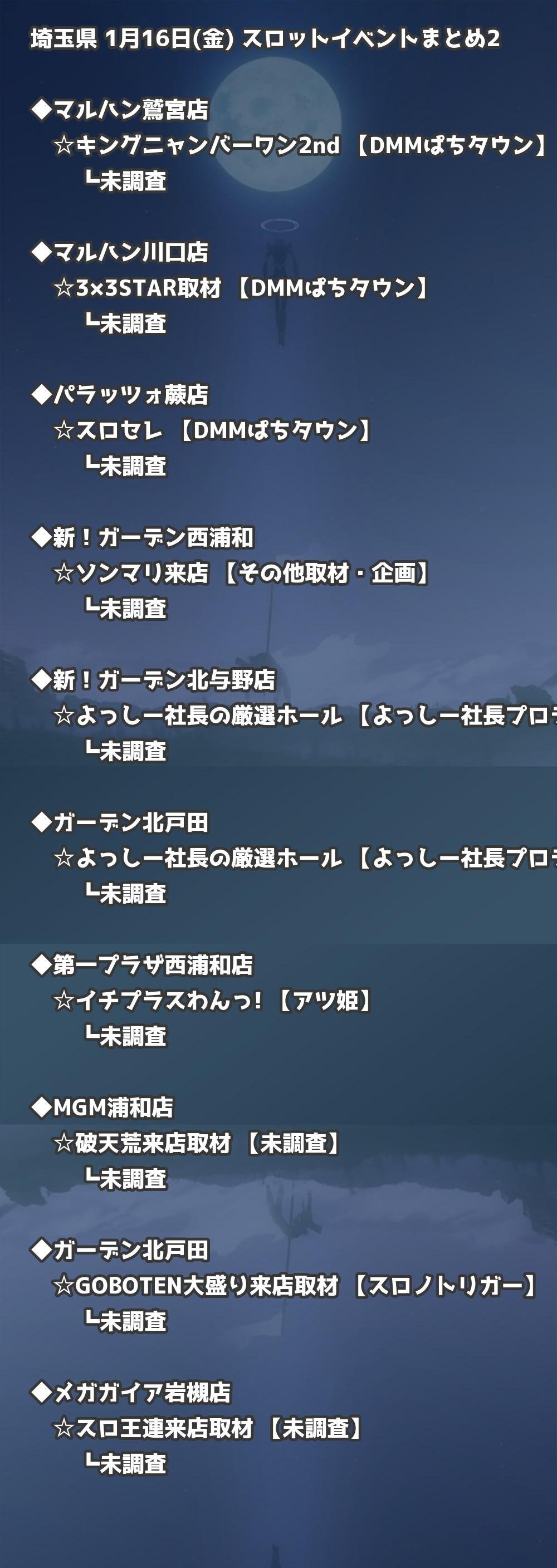 📊 埼玉県 1月16日(金) 勝てるパチンコ・スロット取材店舗一覧|おすすめ順