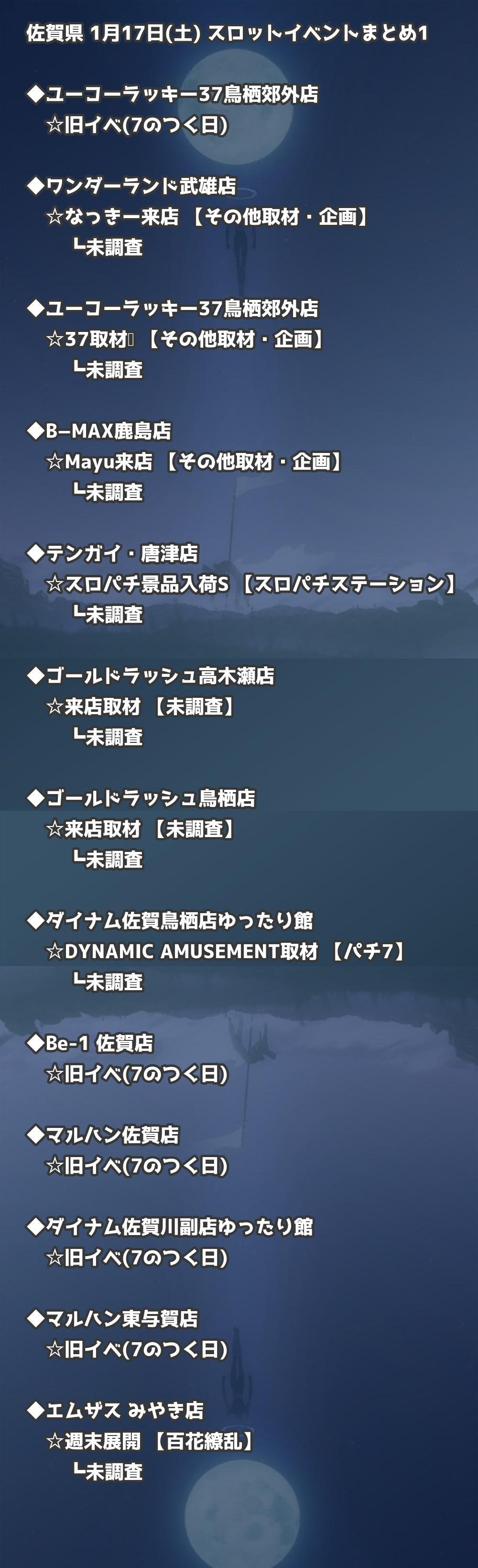 【佐賀県】1月17日(土) パチンコホールイベント取材まとめ記事です。