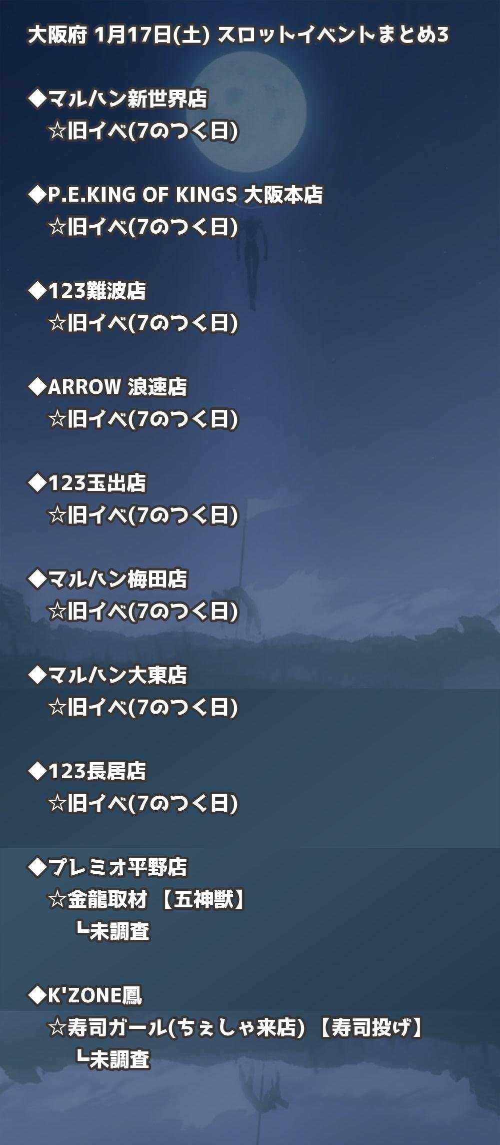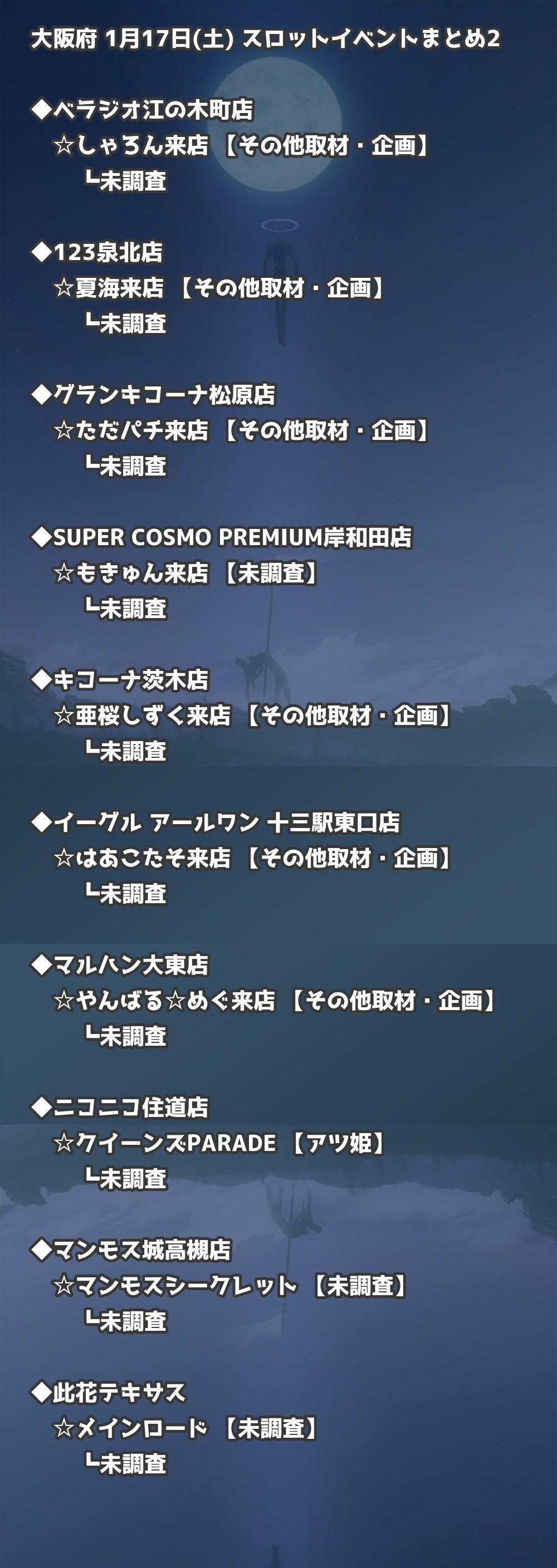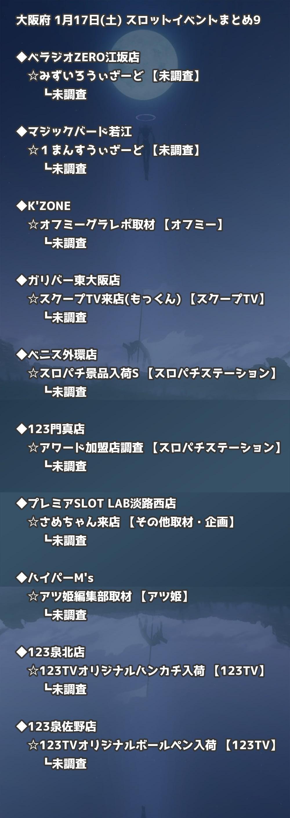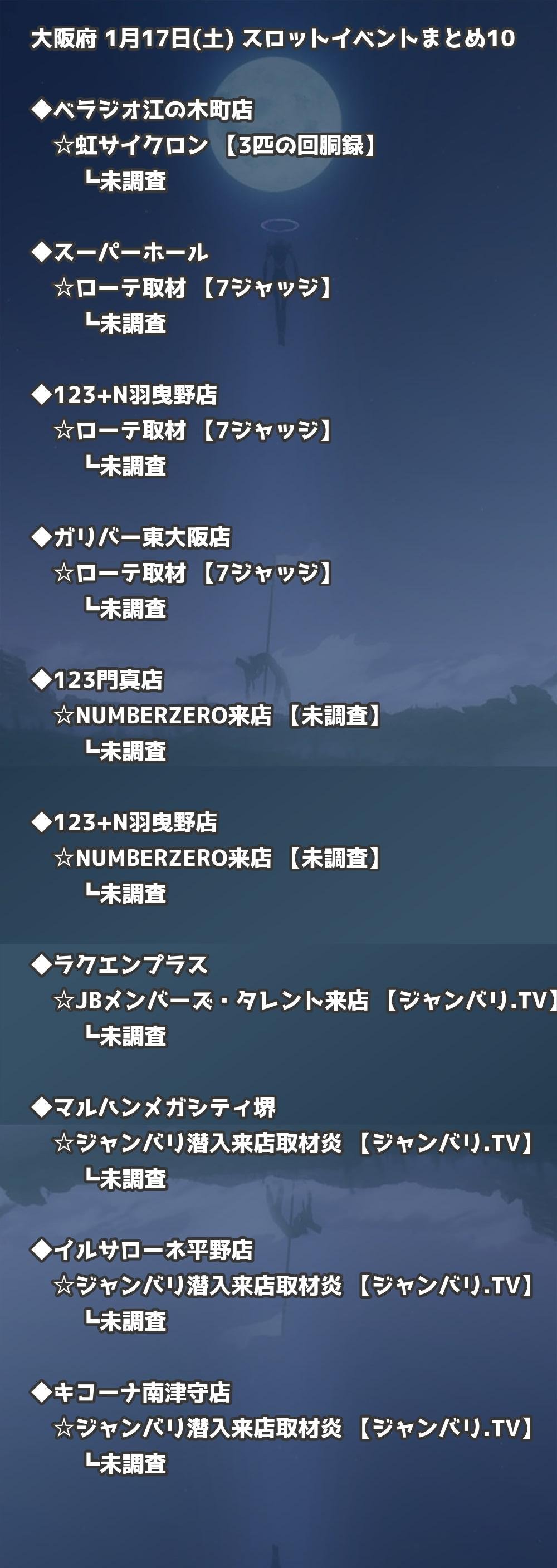 【大阪府】1月17日(土) パチンコホールイベント取材まとめ記事です。
