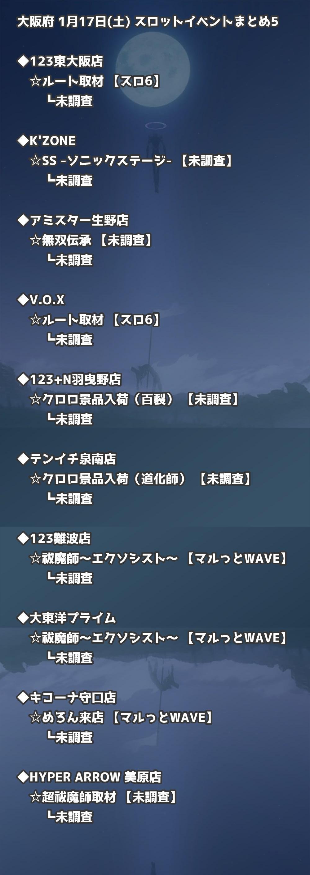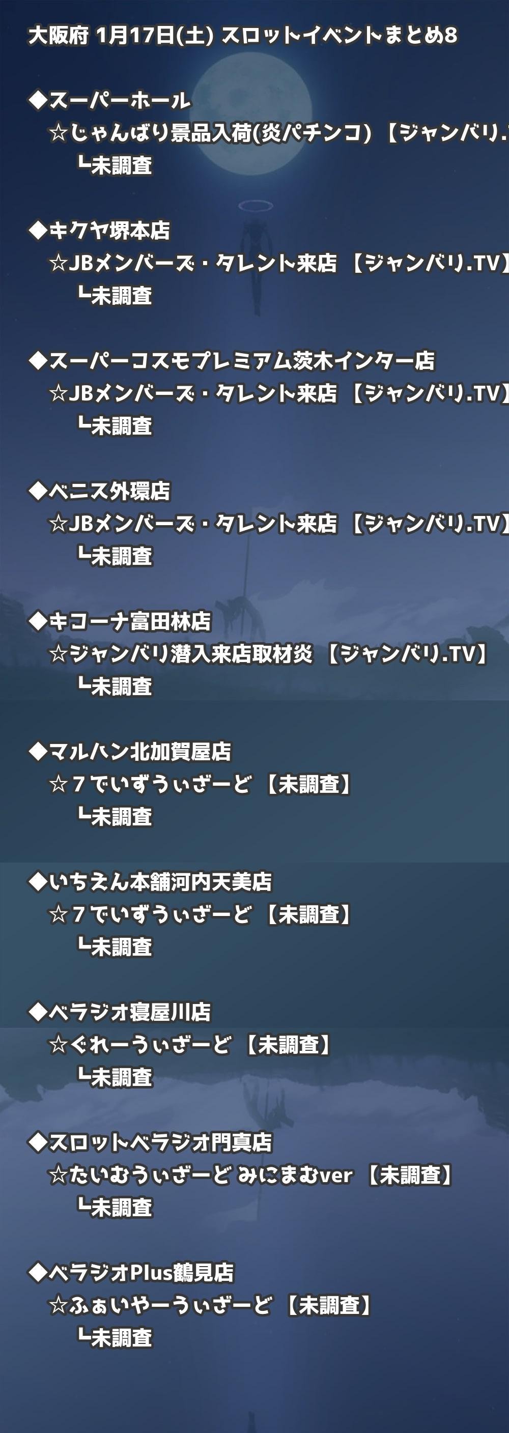 📊 大阪府 1月17日(土) 勝てるパチンコ・スロット取材店舗一覧|おすすめ順