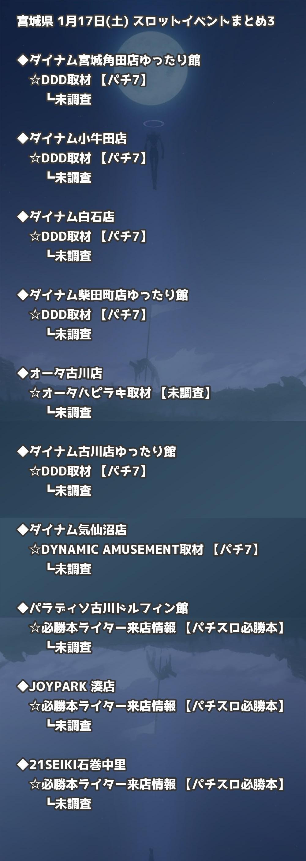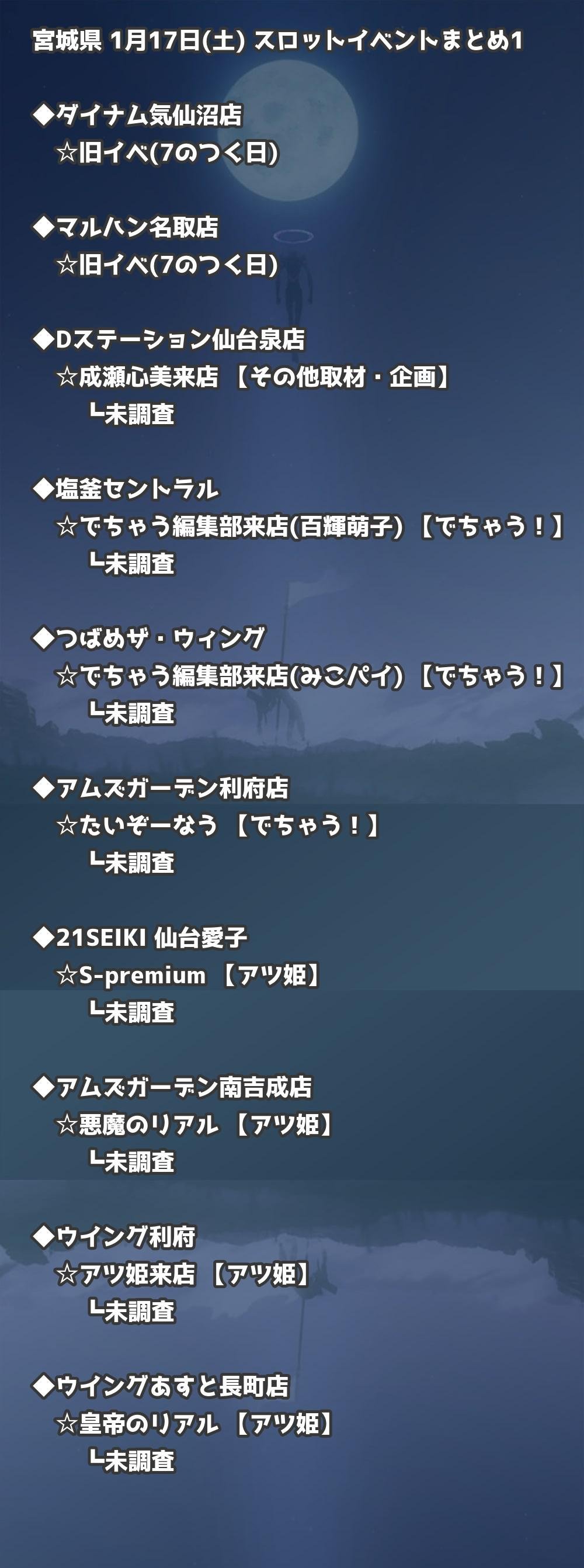 📊 宮城県 1月17日(土) 勝てるパチンコ・スロット取材店舗一覧|おすすめ順