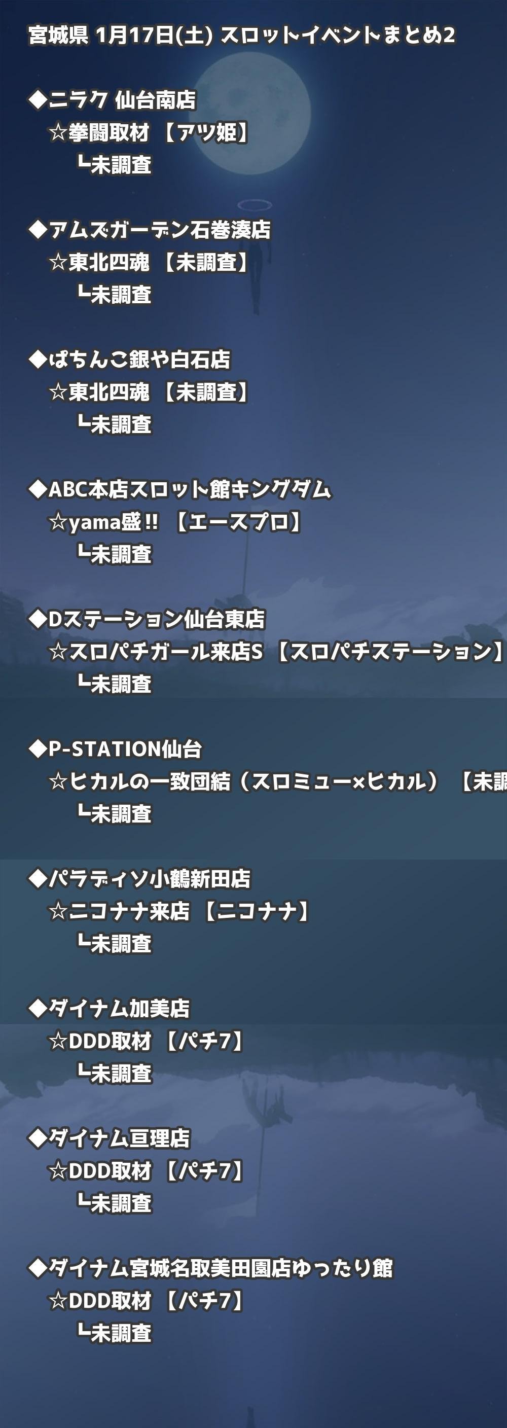 【宮城県】1月17日(土) パチンコホールイベント取材まとめ記事です。