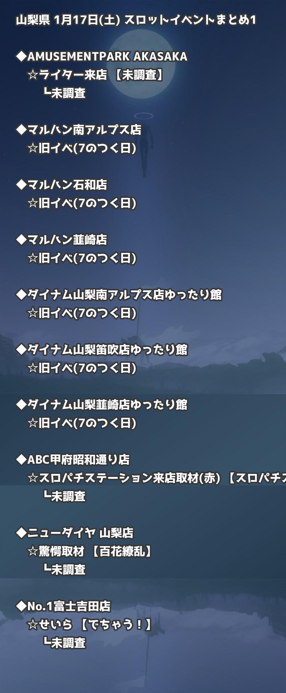 📊 山梨県 1月17日(土) 勝てるパチンコ・スロット取材店舗一覧|おすすめ順