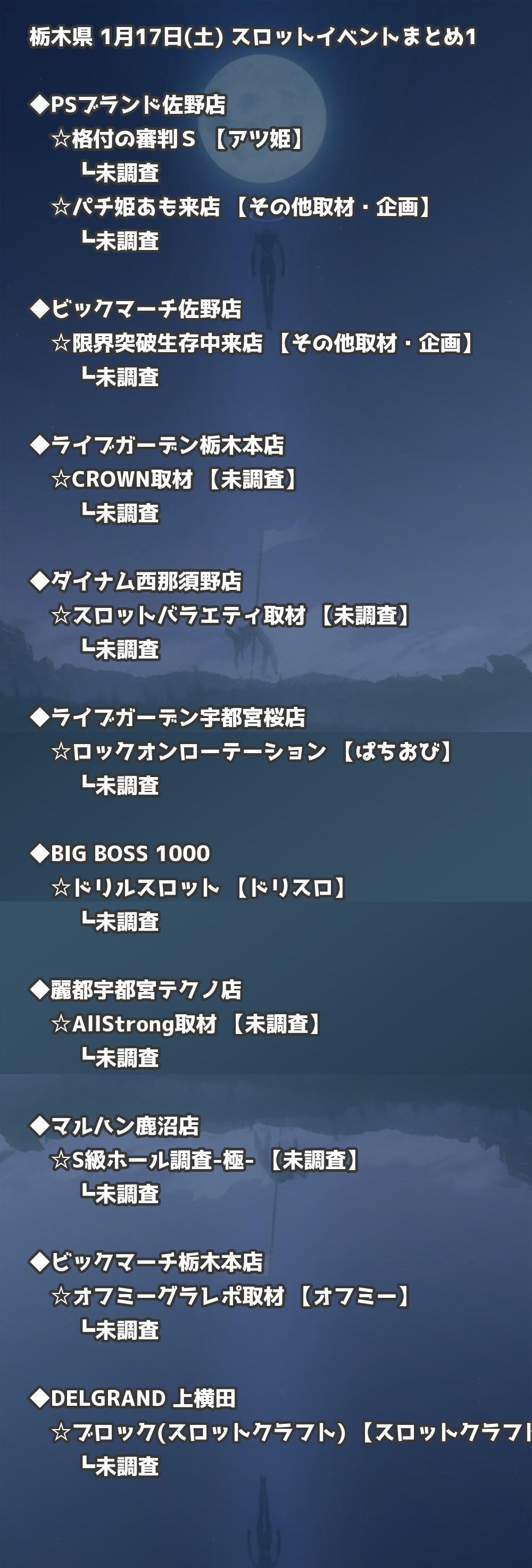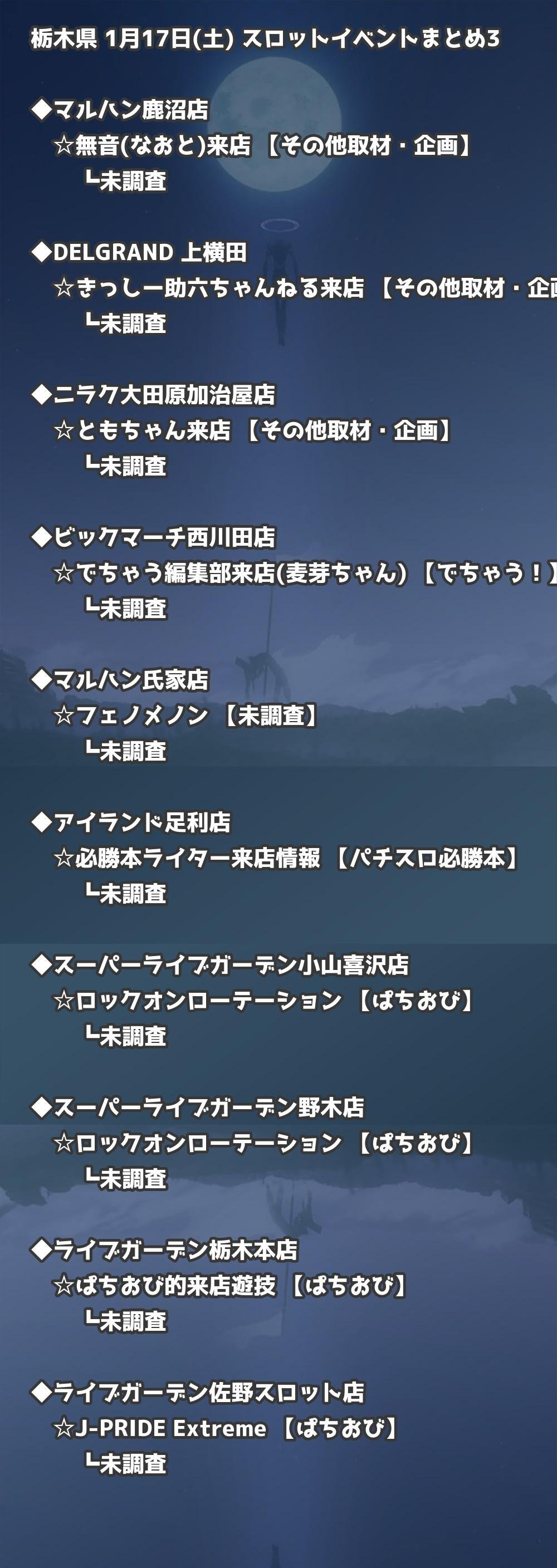 📊 栃木県 1月17日(土) 勝てるパチンコ・スロット取材店舗一覧|おすすめ順