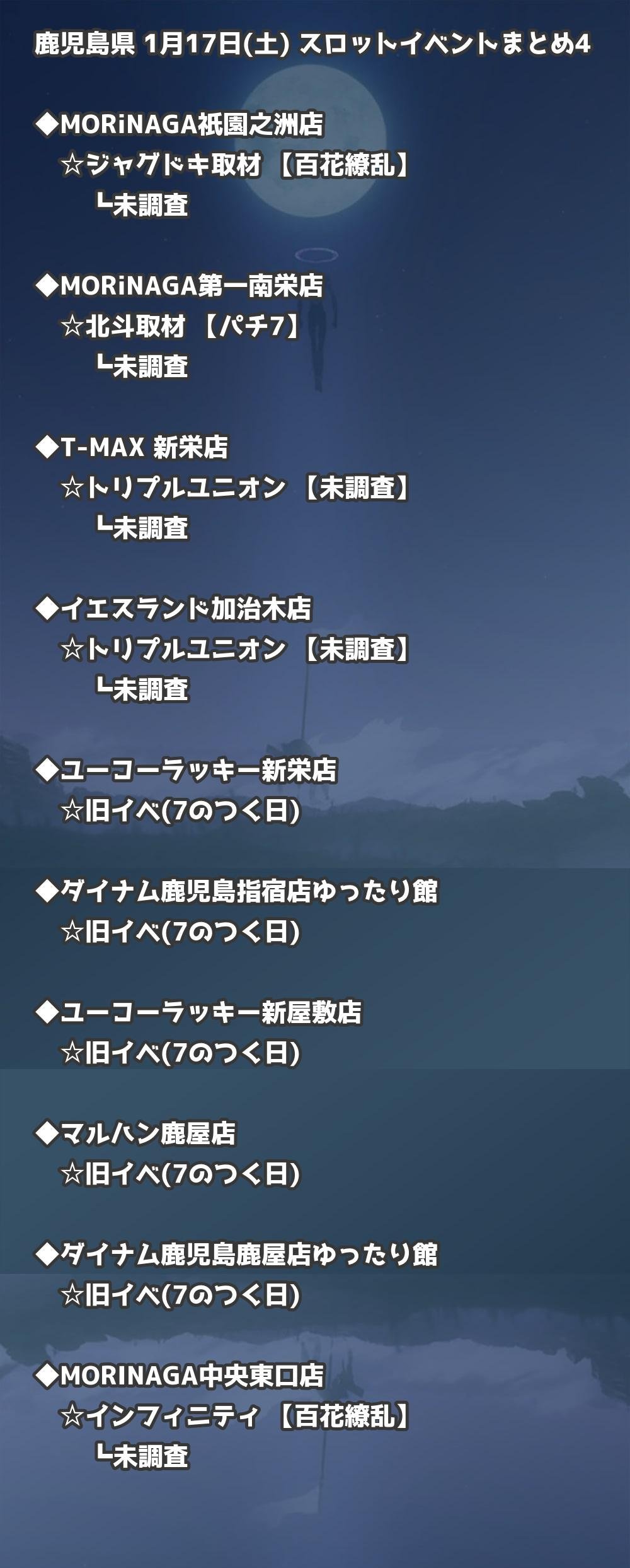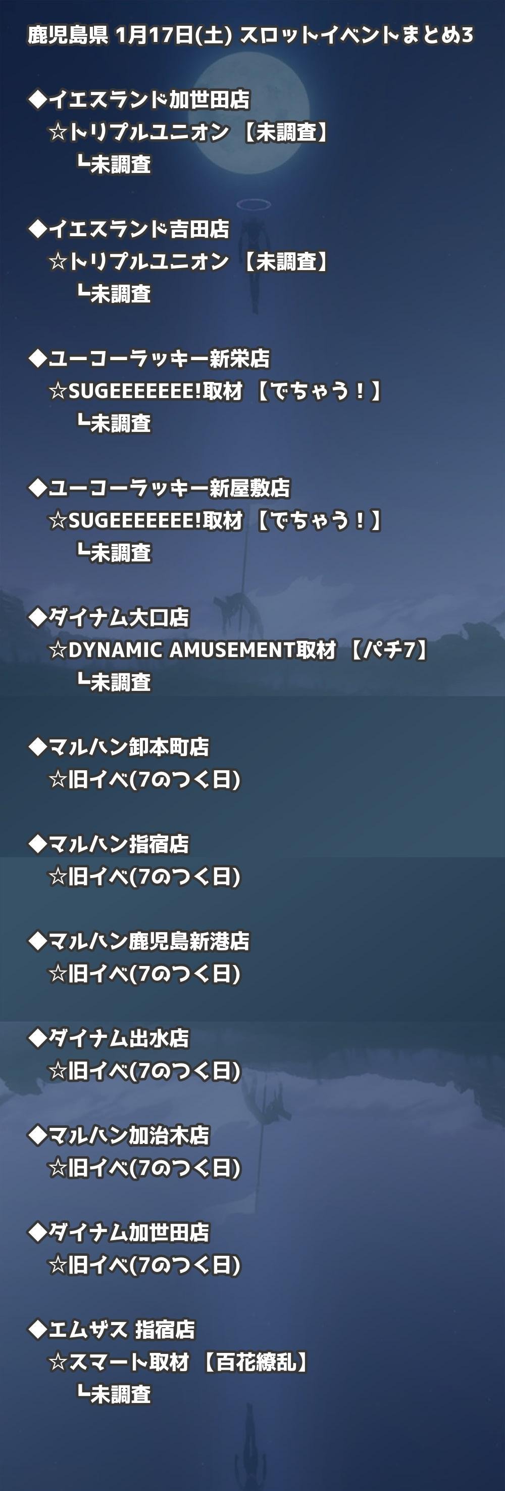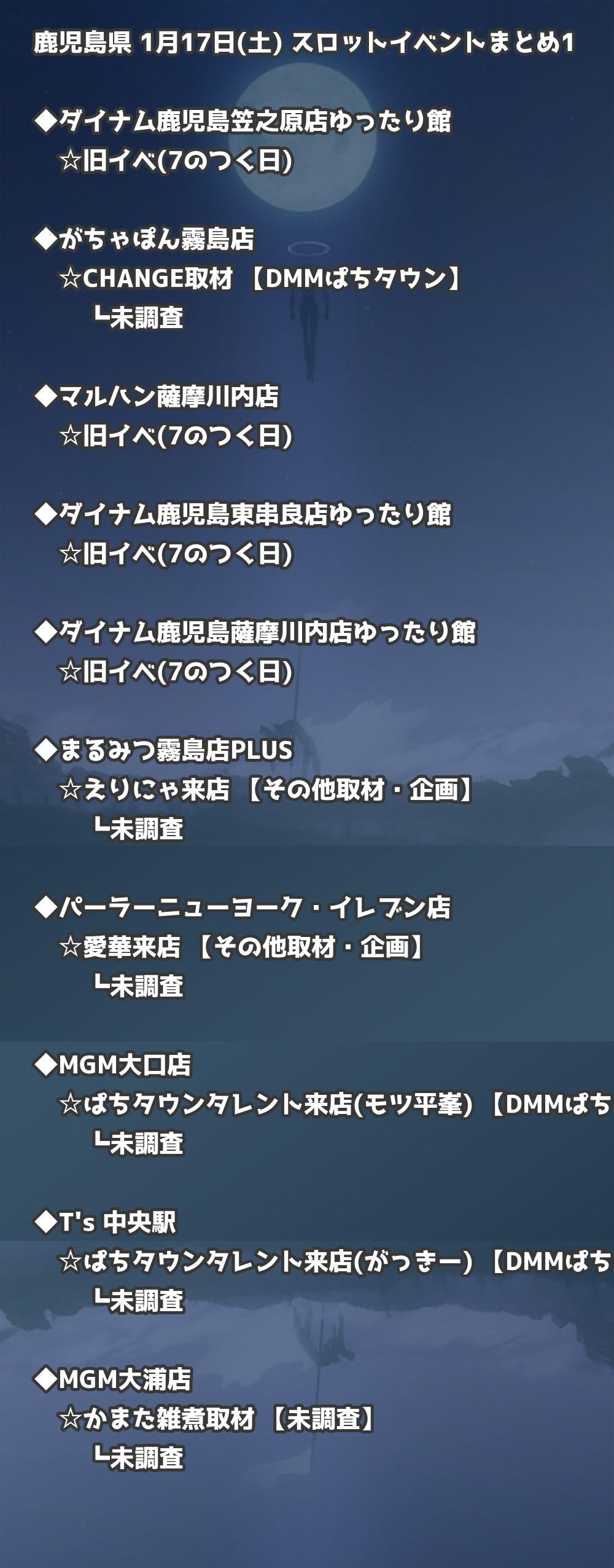 【鹿児島県】1月17日(土) パチンコホールイベント取材まとめ記事です。