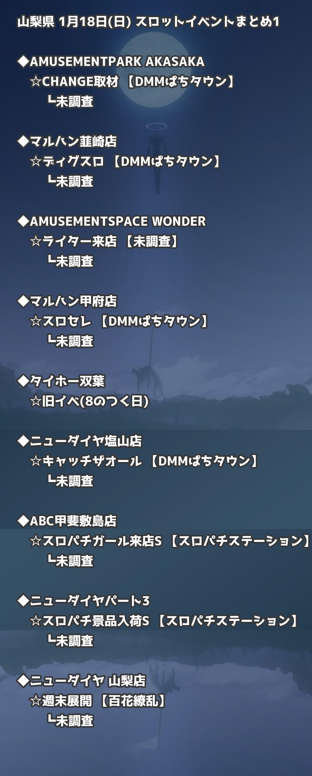 【山梨県】1月18日(日) パチンコホールイベント取材まとめ記事です。