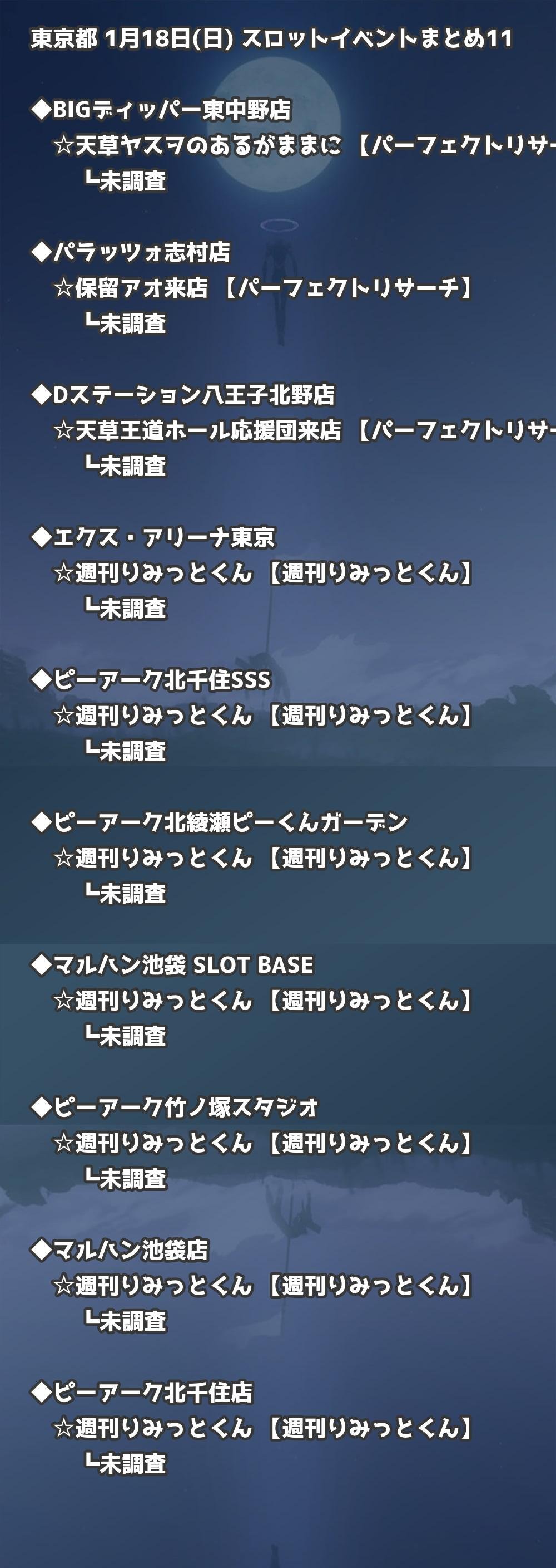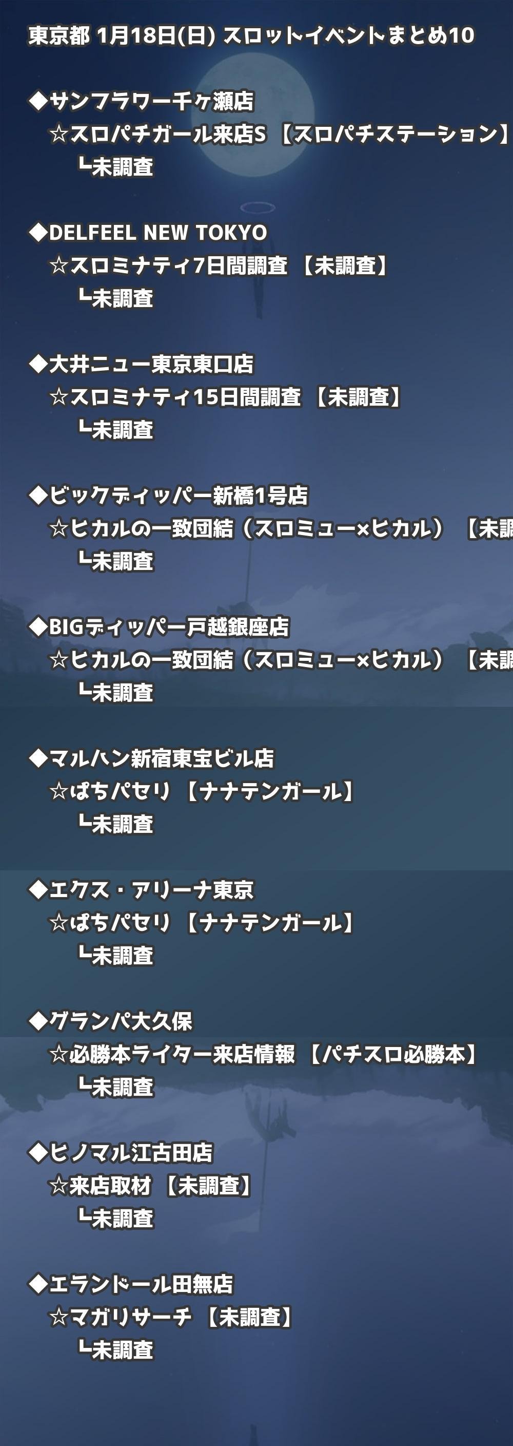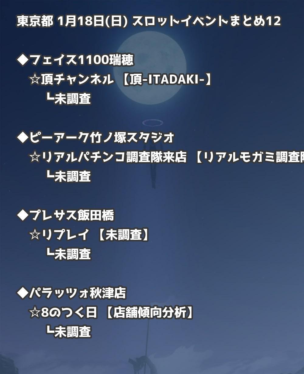 📊 東京都 1月18日(日) 勝てるパチンコ・スロット取材店舗一覧|おすすめ順