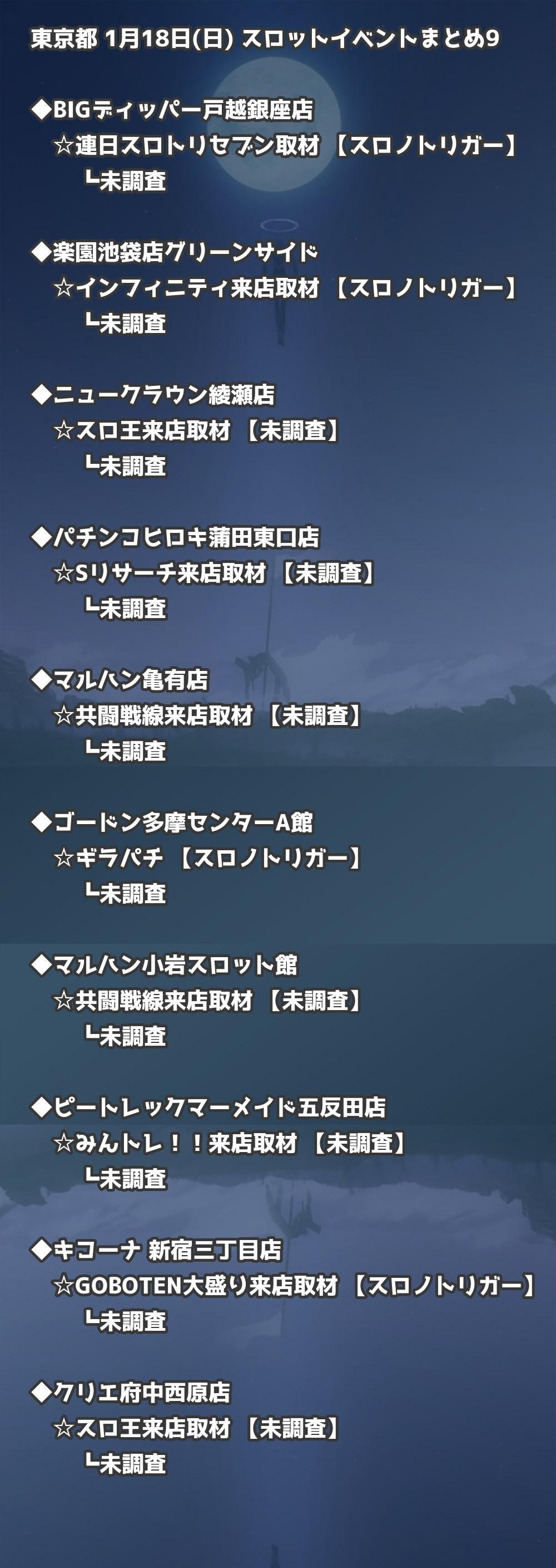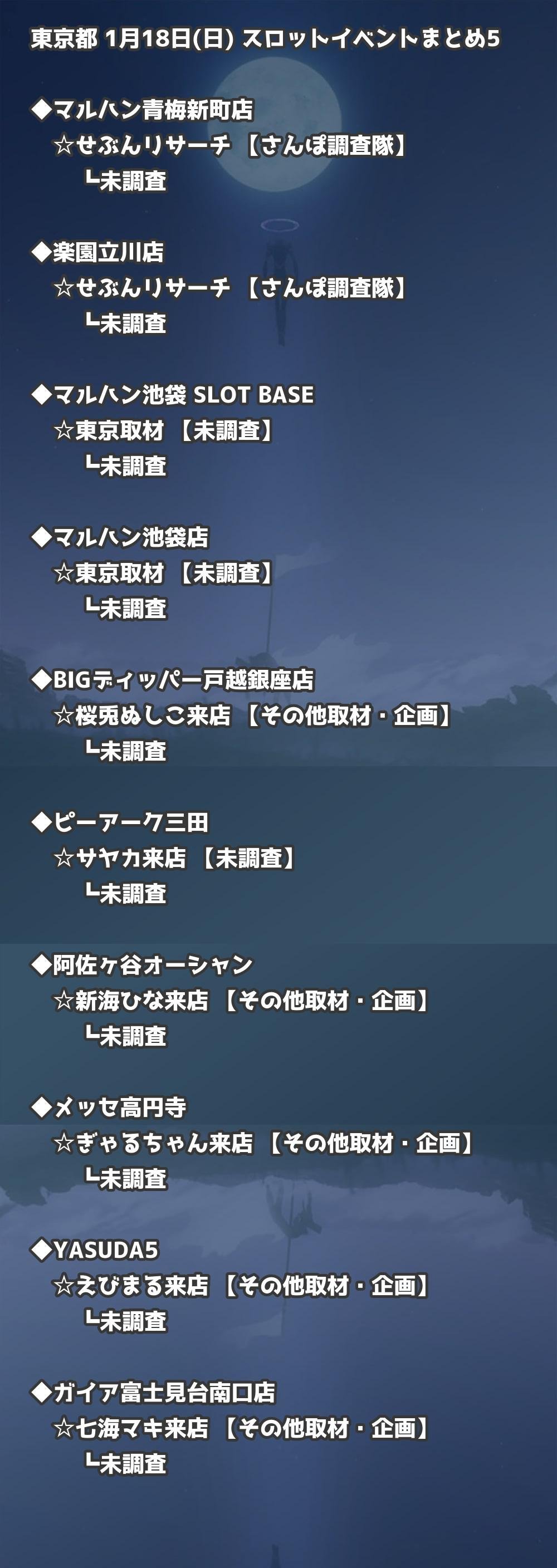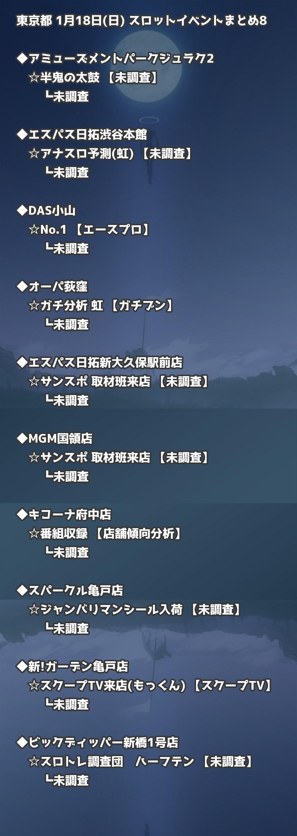 📊 東京都 1月18日(日) 勝てるパチンコ・スロット取材店舗一覧|おすすめ順