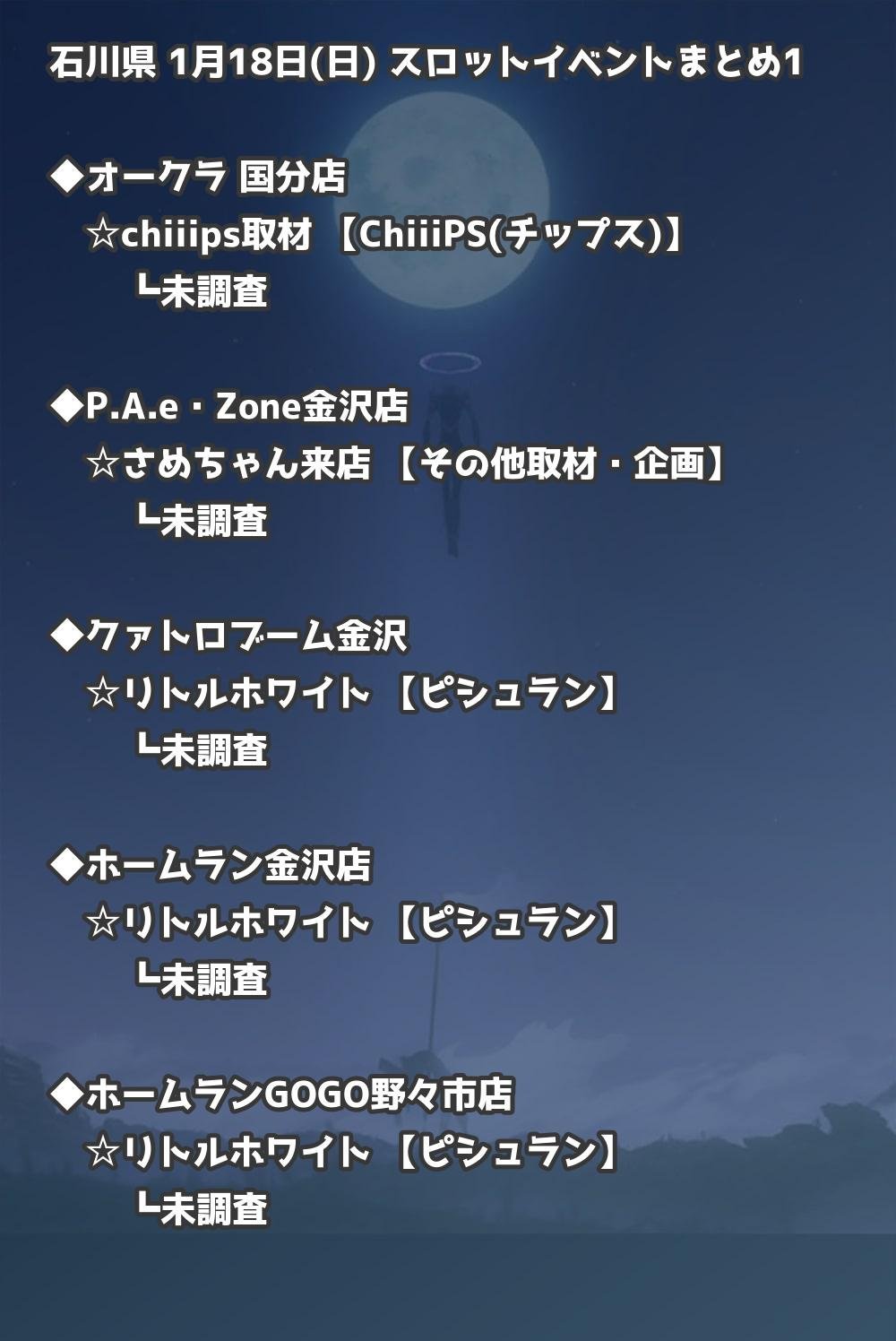 【石川県】1月18日(日) パチンコホールイベント取材まとめ記事です。