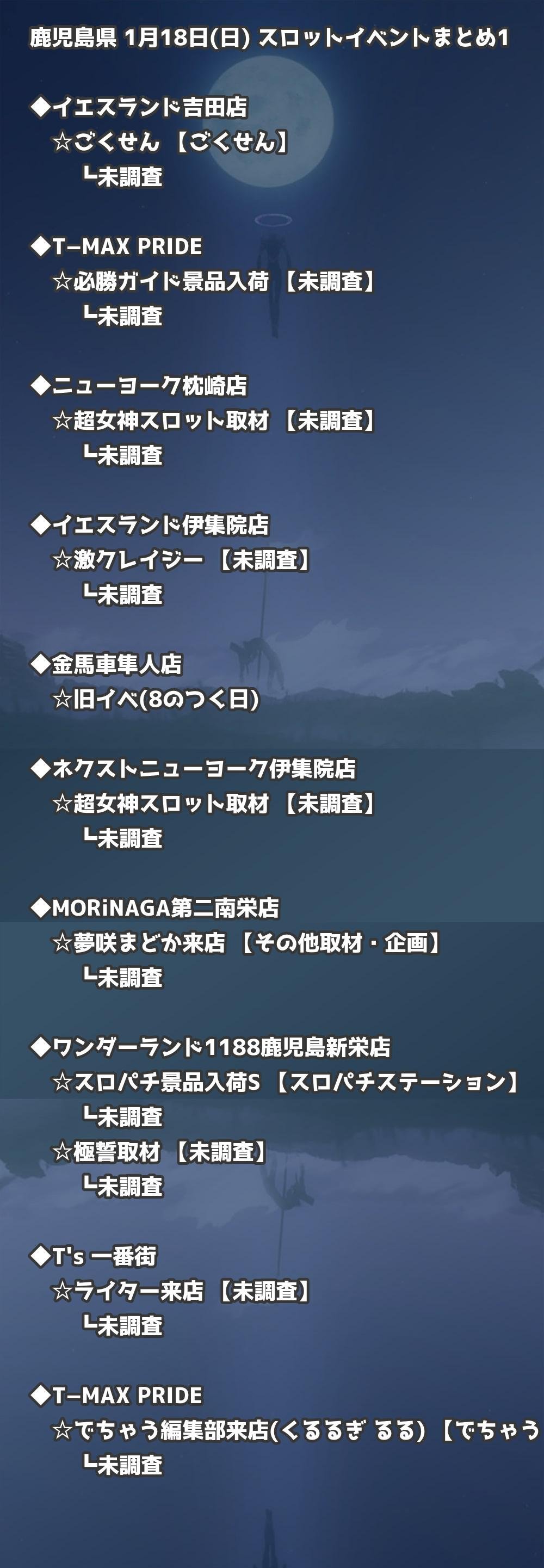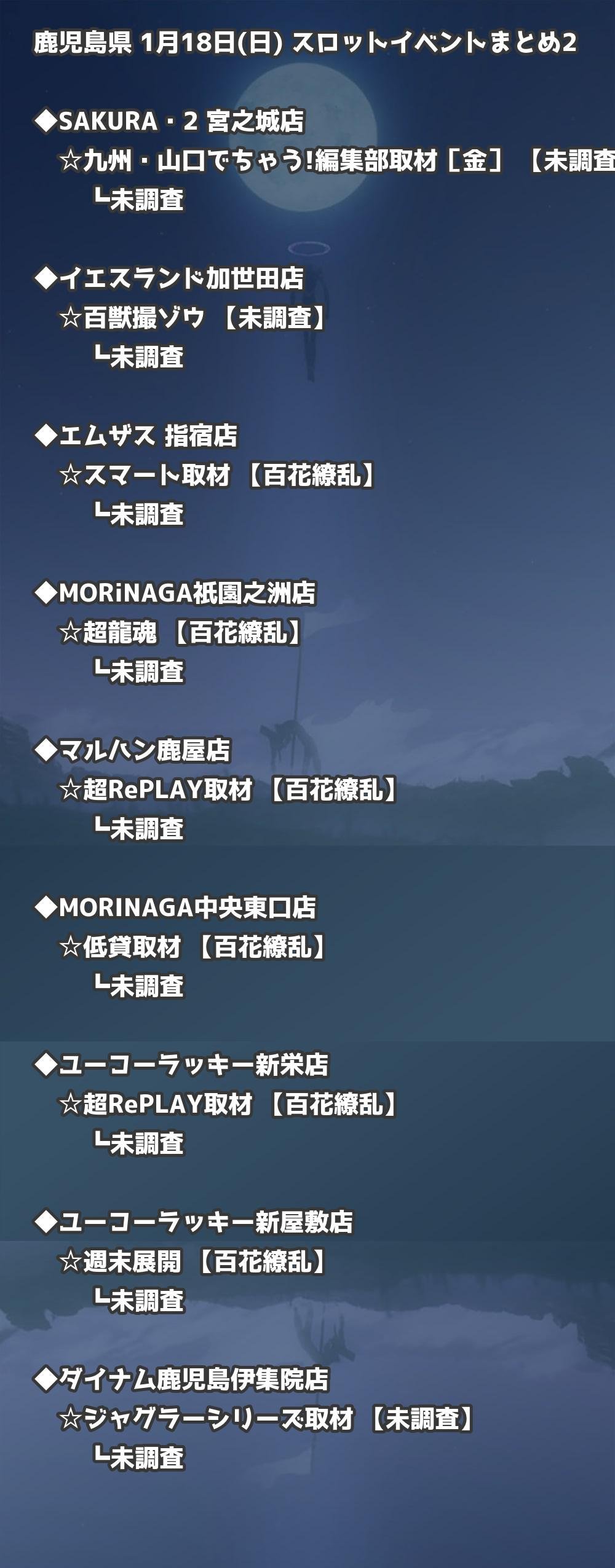 【鹿児島県】1月18日(日) パチンコホールイベント取材まとめ記事です。