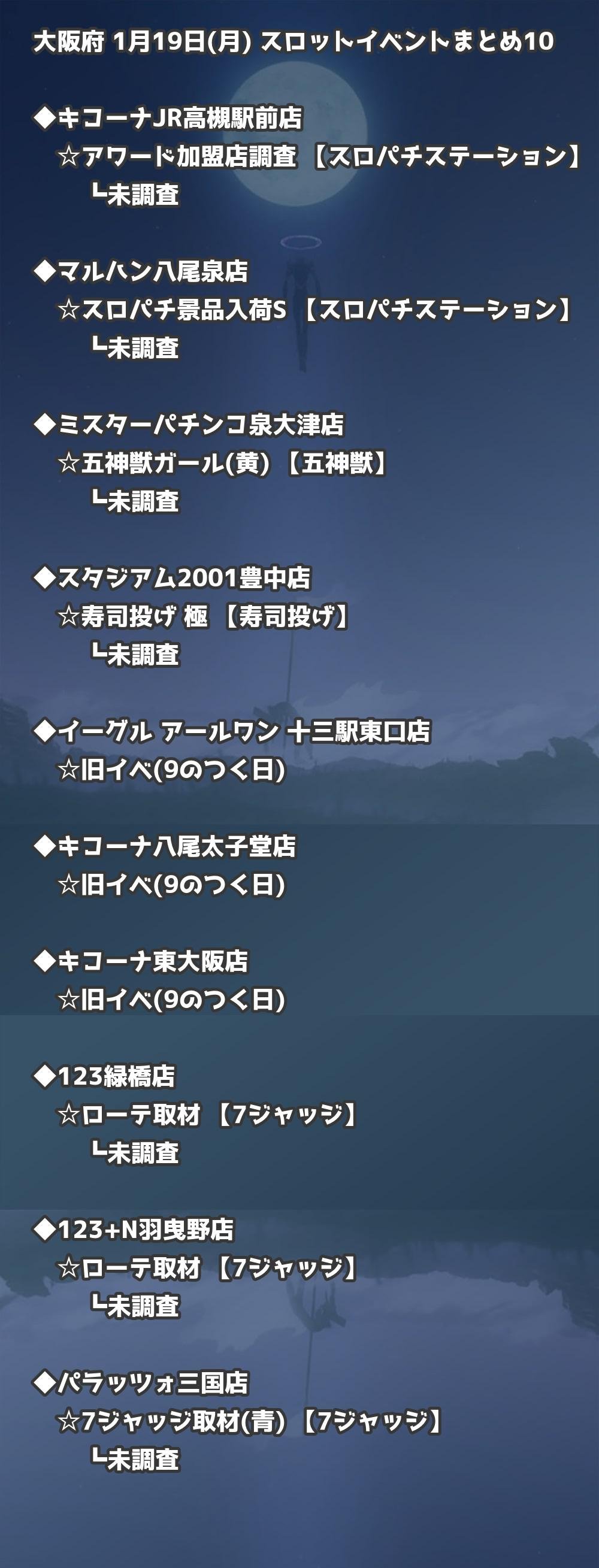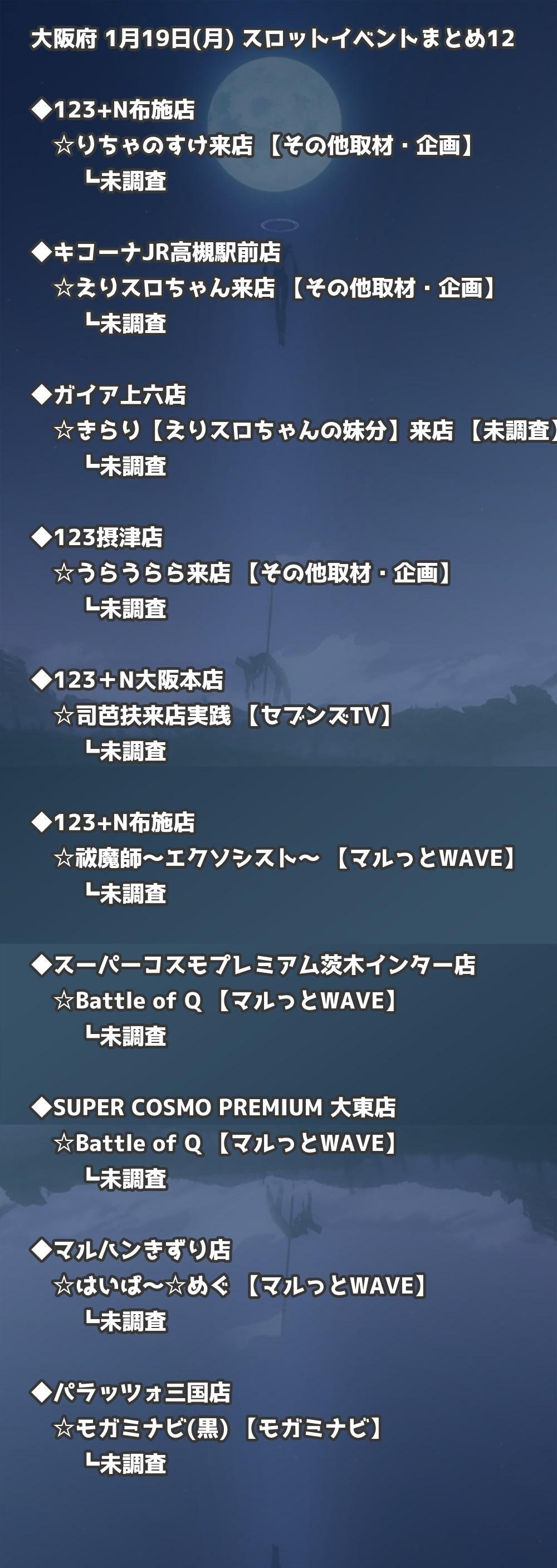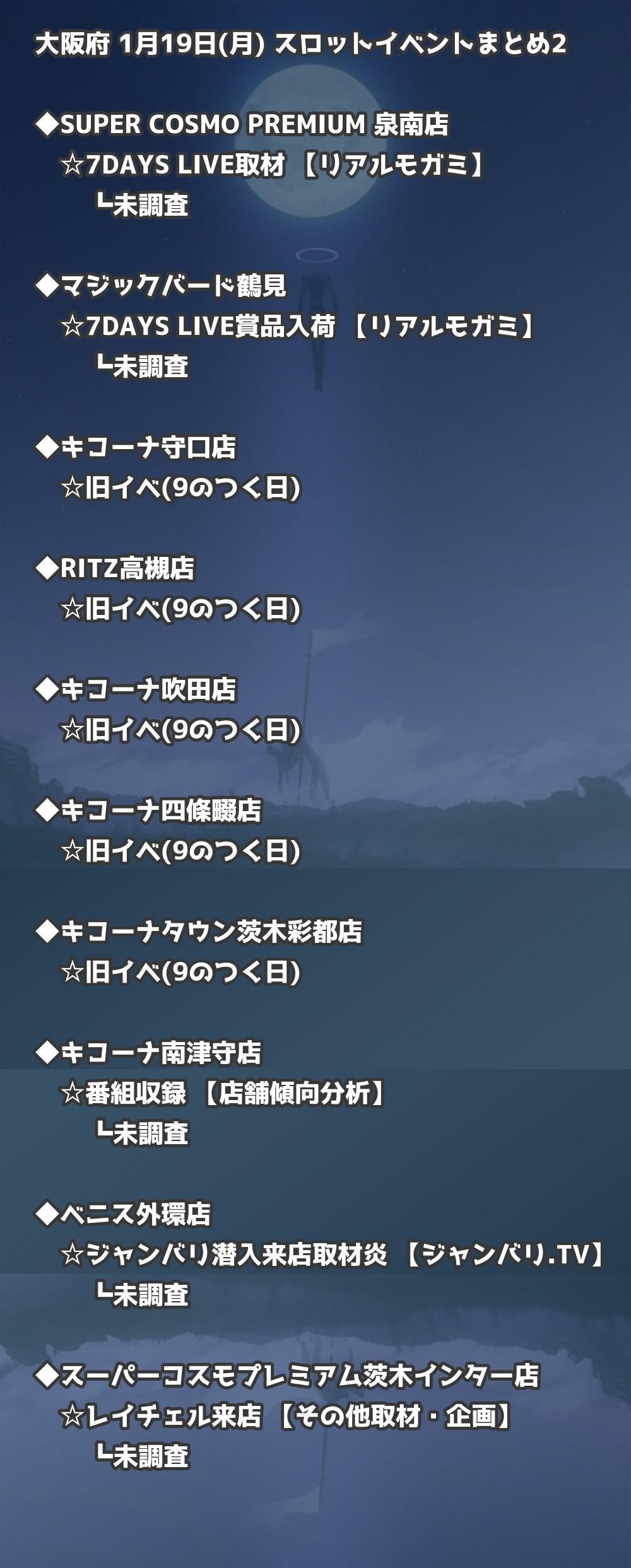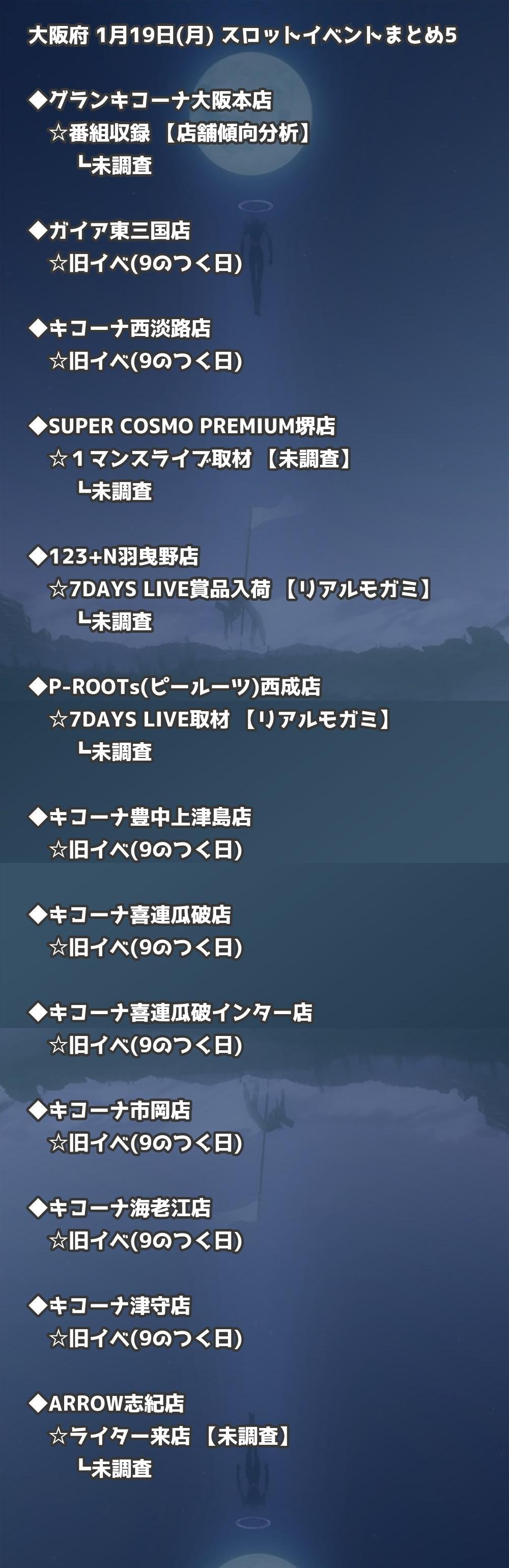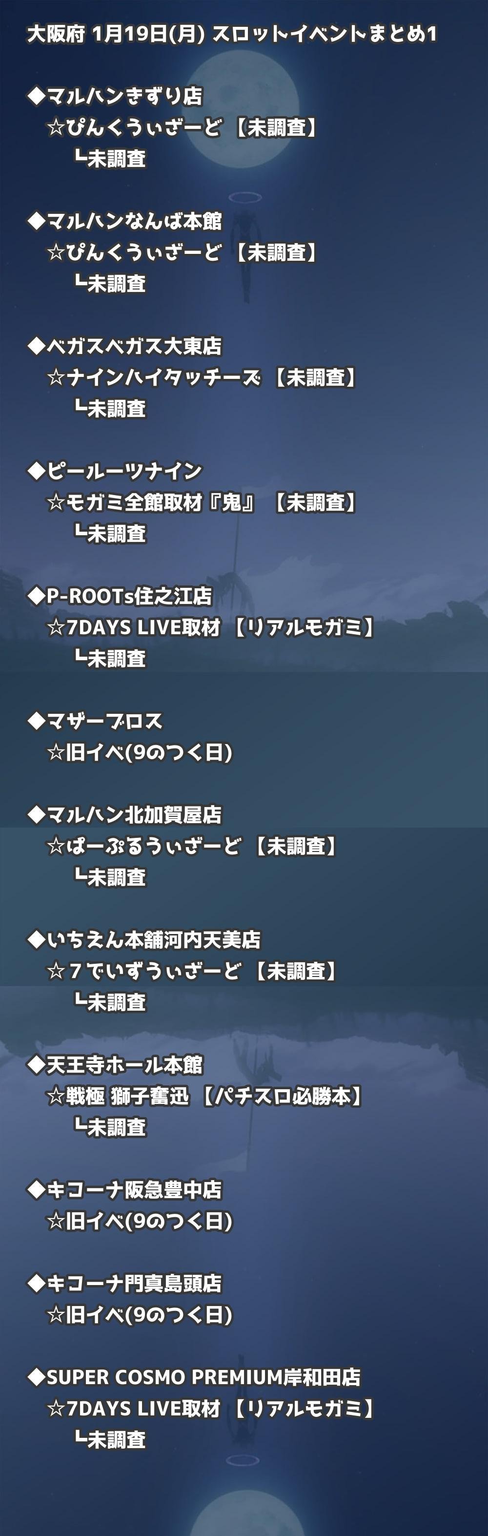 【大阪府】1月19日(月) パチンコホールイベント取材まとめ記事です。