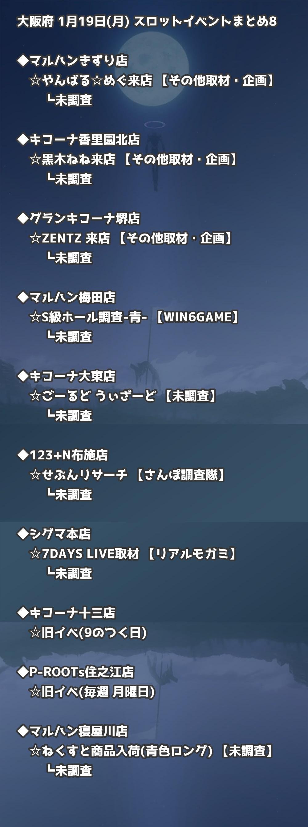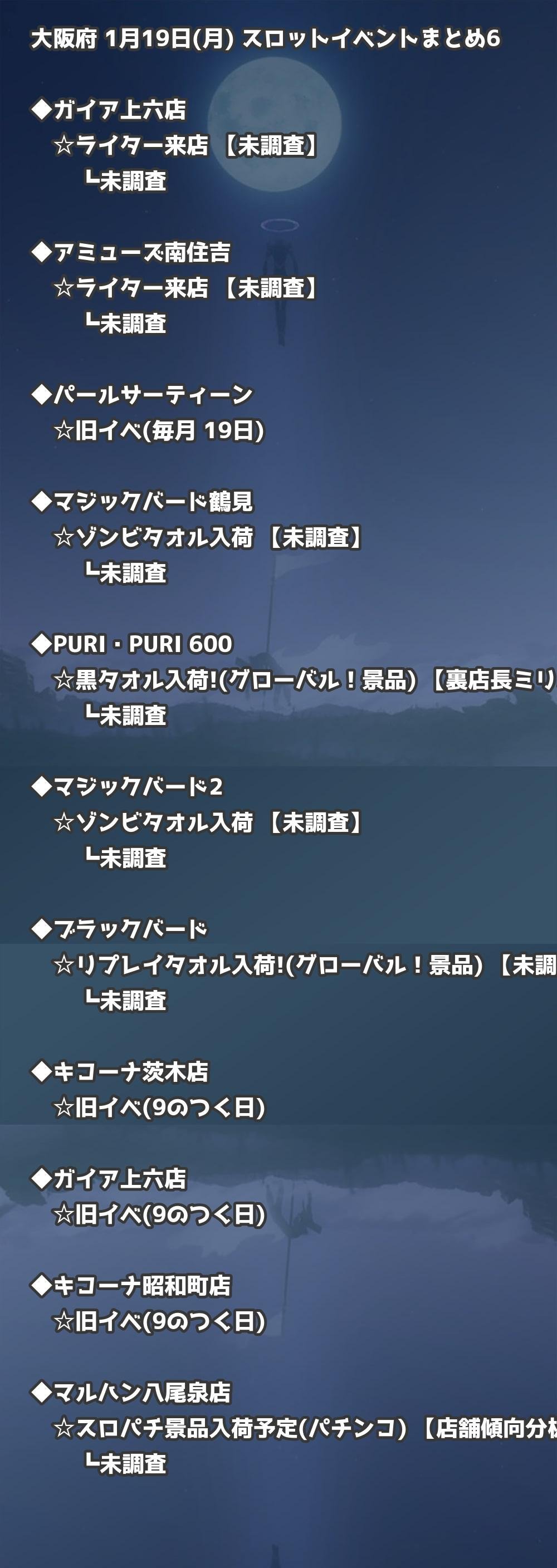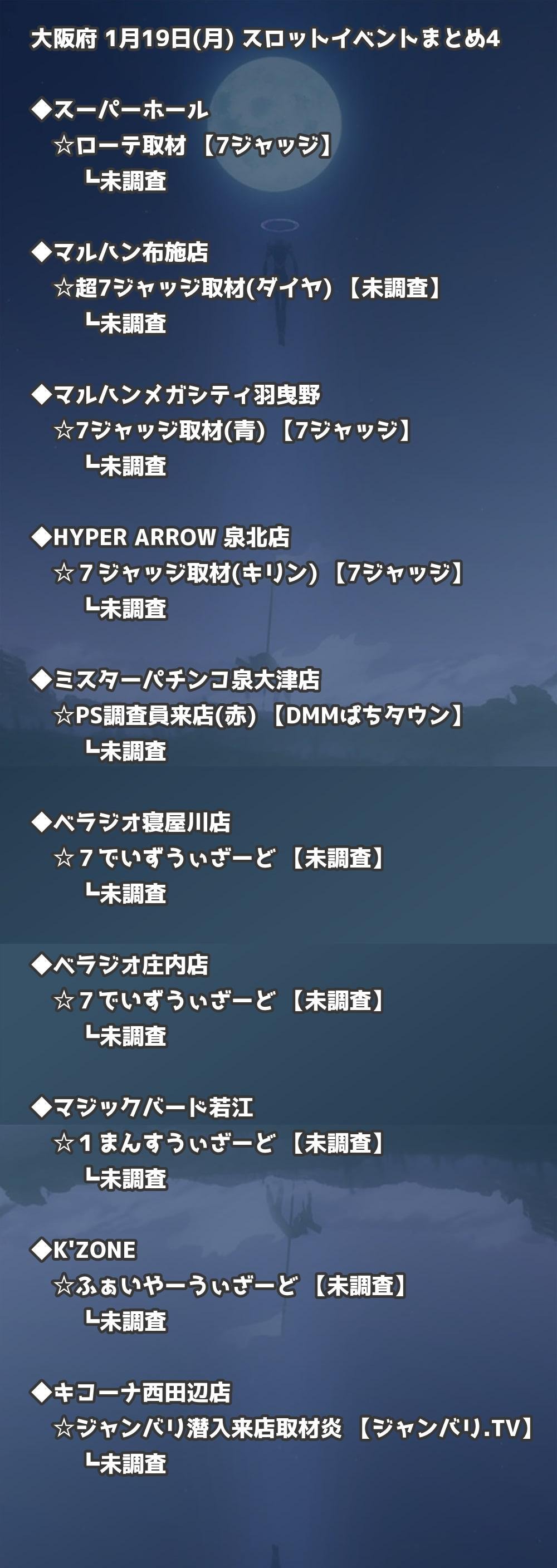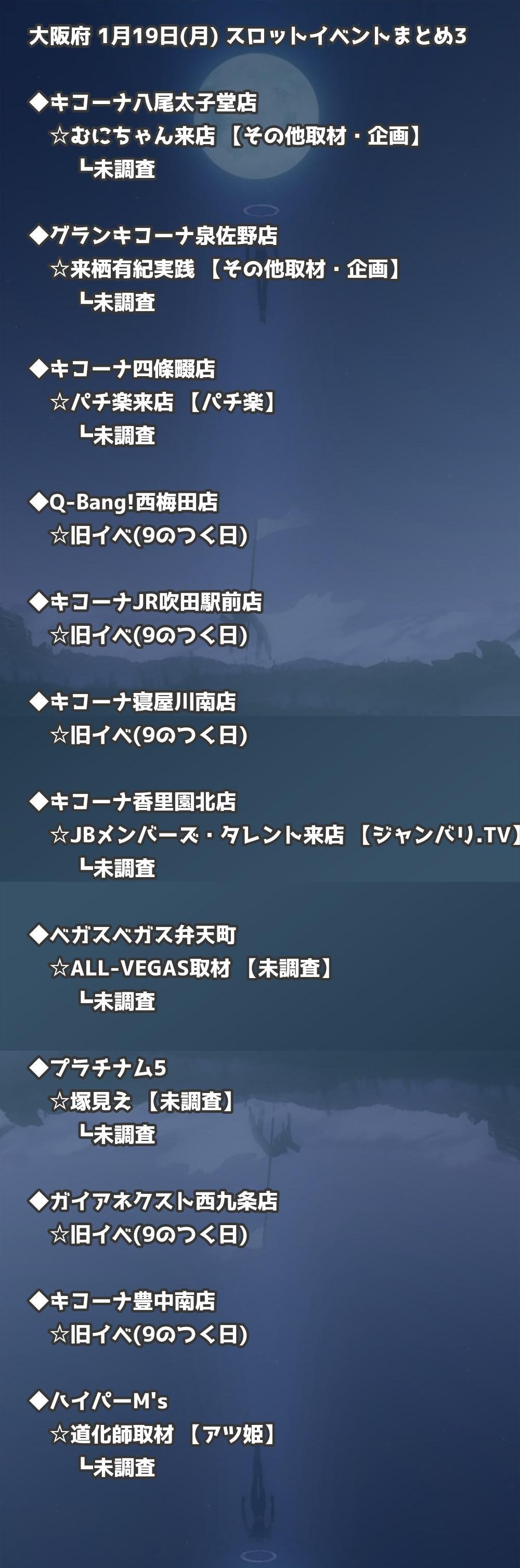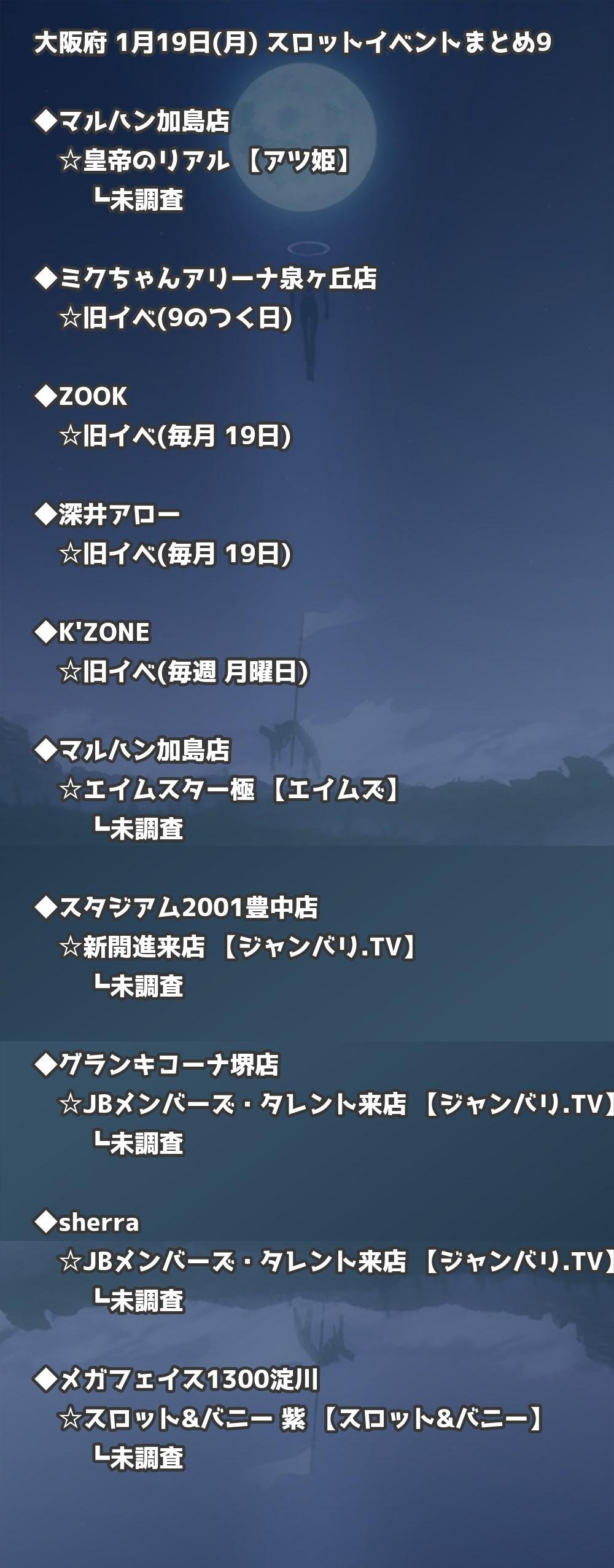 【大阪府】1月19日(月) パチンコホールイベント取材まとめ記事です。