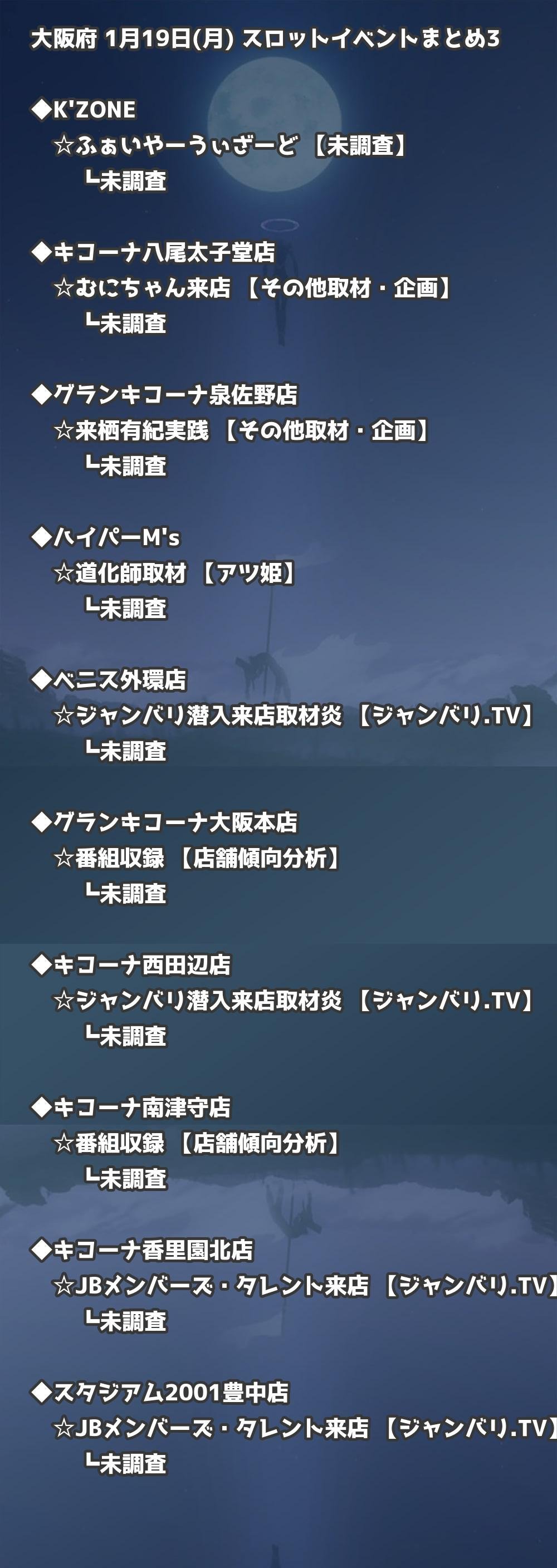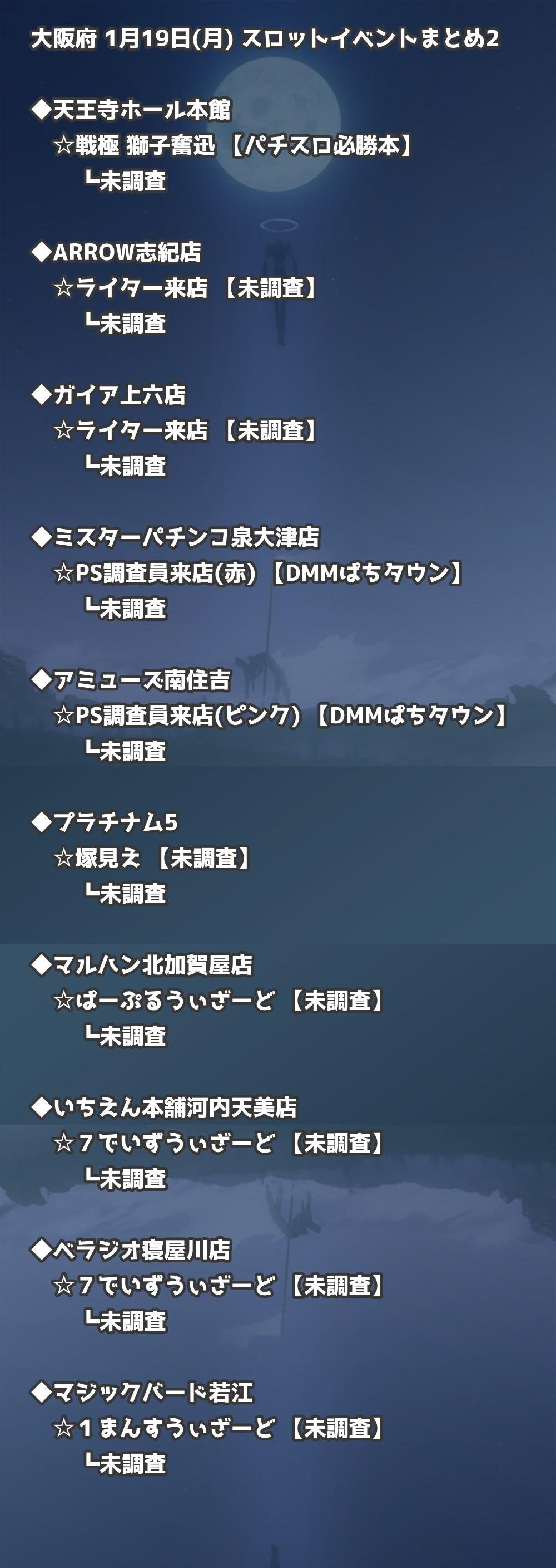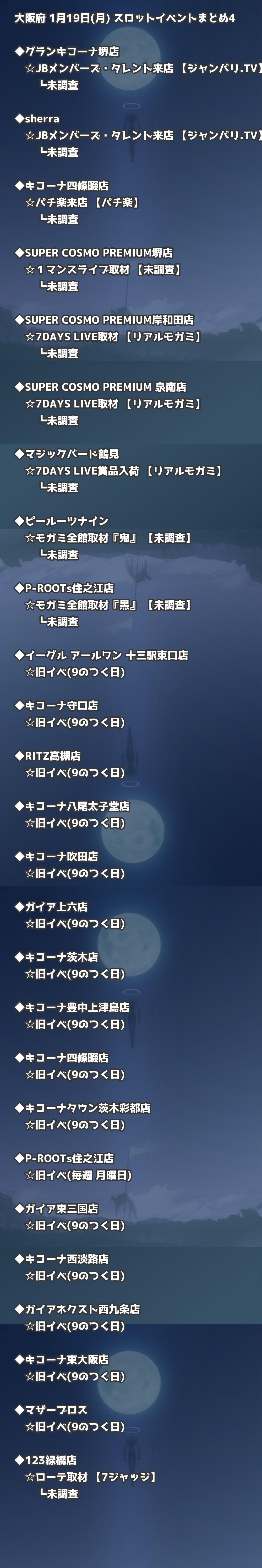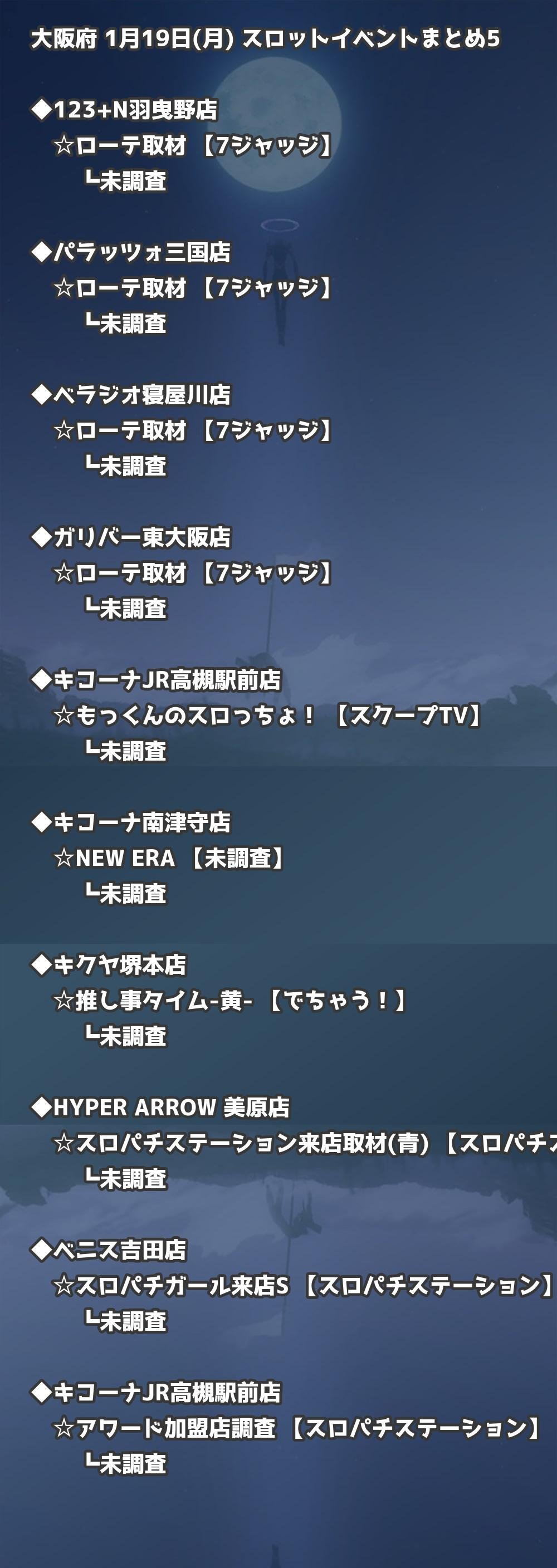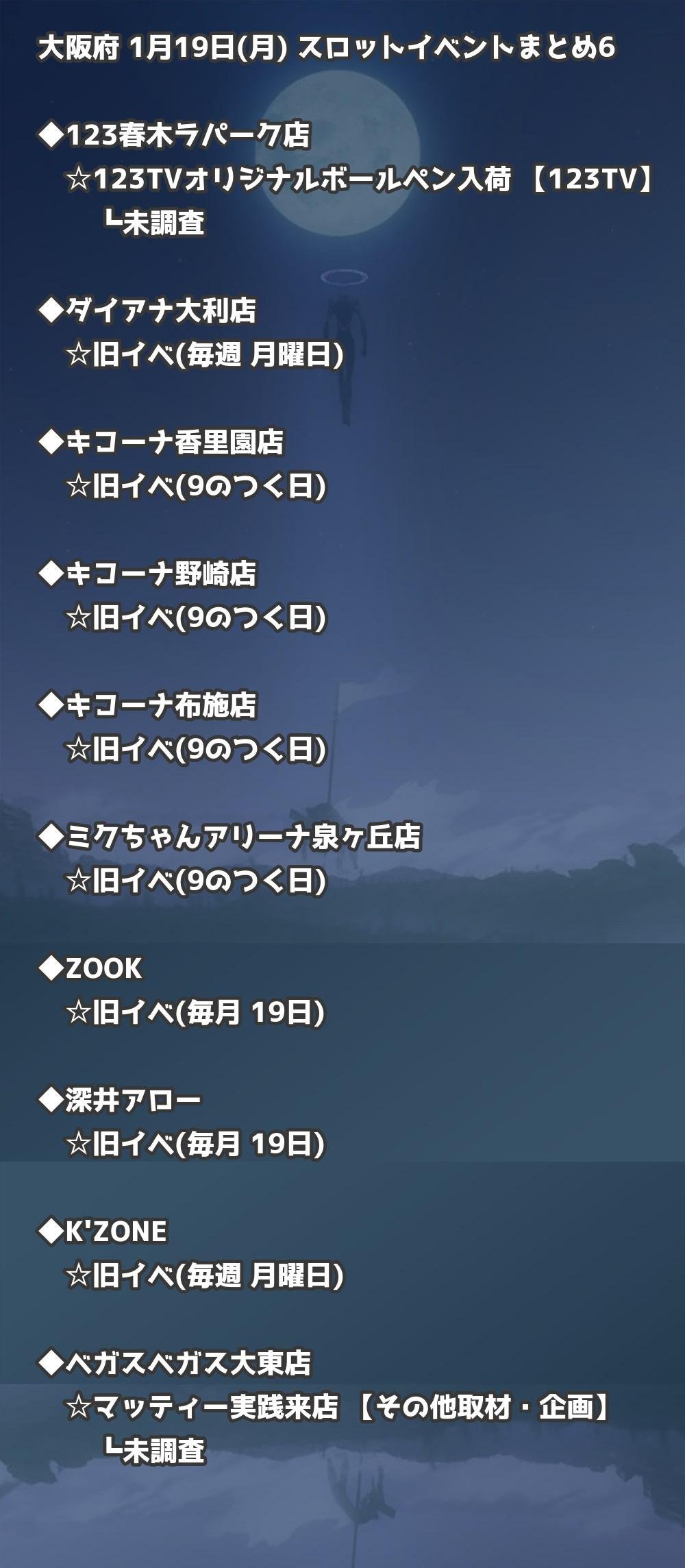 【大阪府】1月19日(月) パチンコホールイベント取材まとめ記事です。