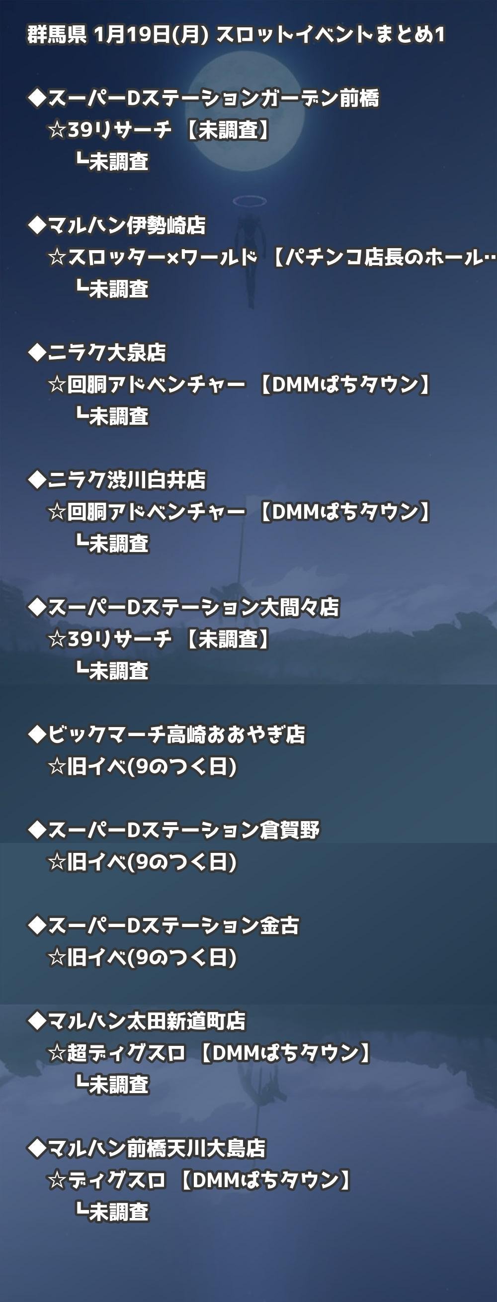 【群馬県】1月19日(月) パチンコホールイベント取材まとめ記事です。