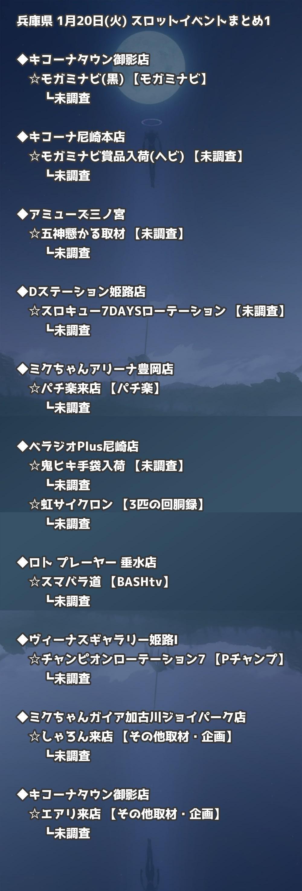 【兵庫県】1月20日(火) パチンコホールイベント取材まとめ記事です。