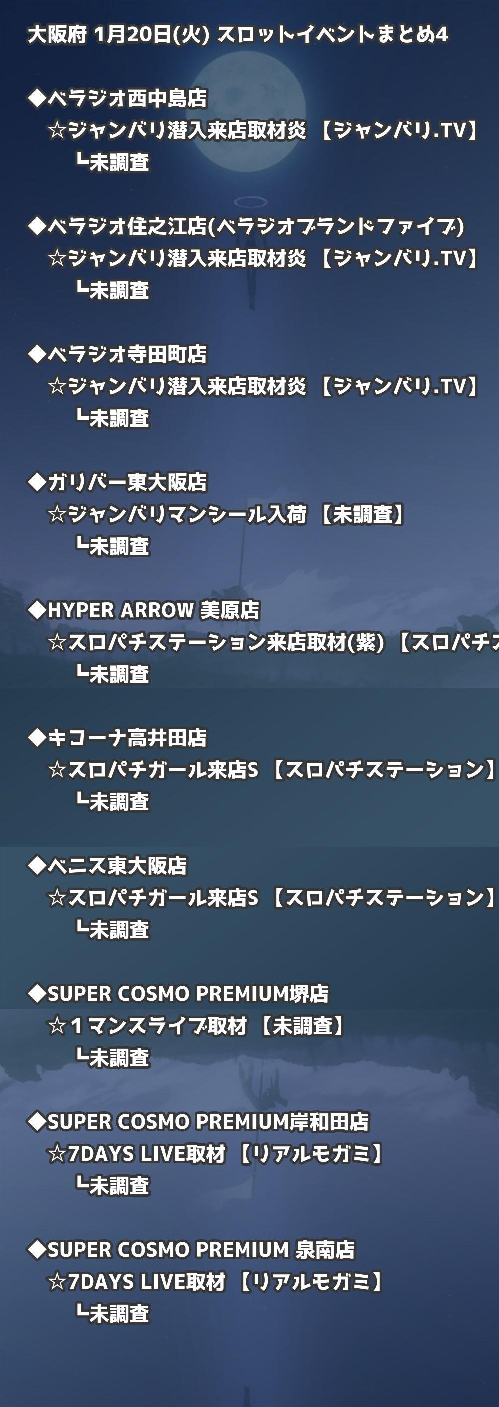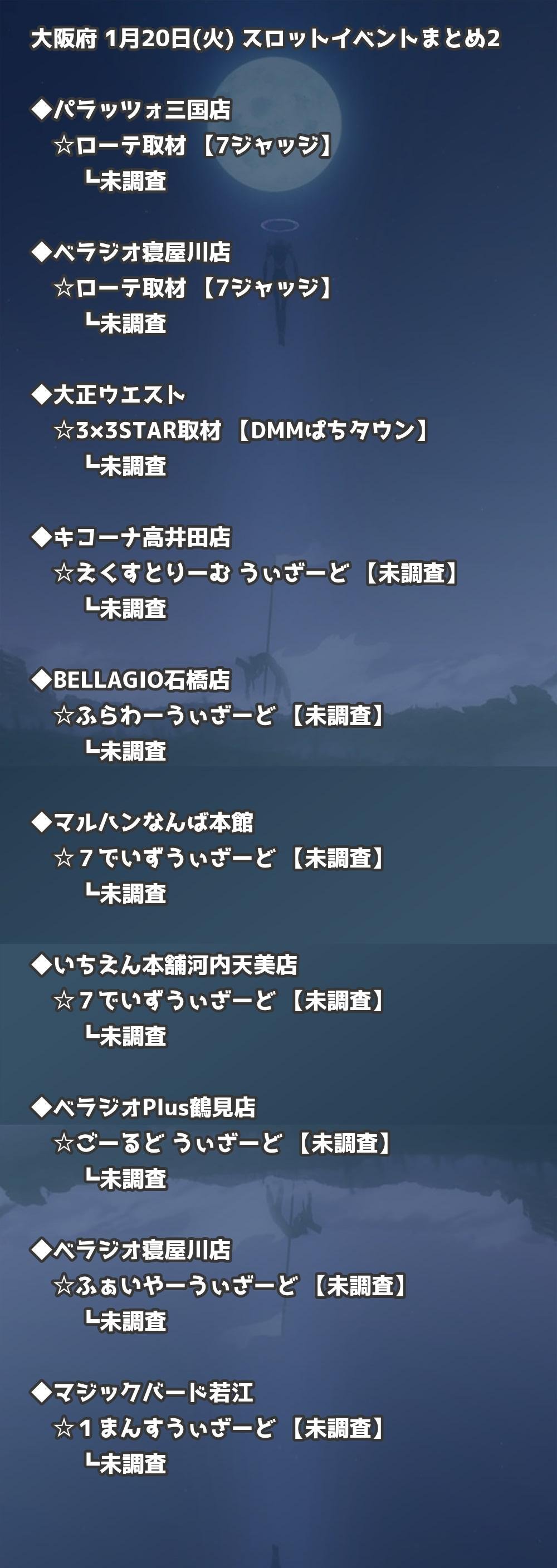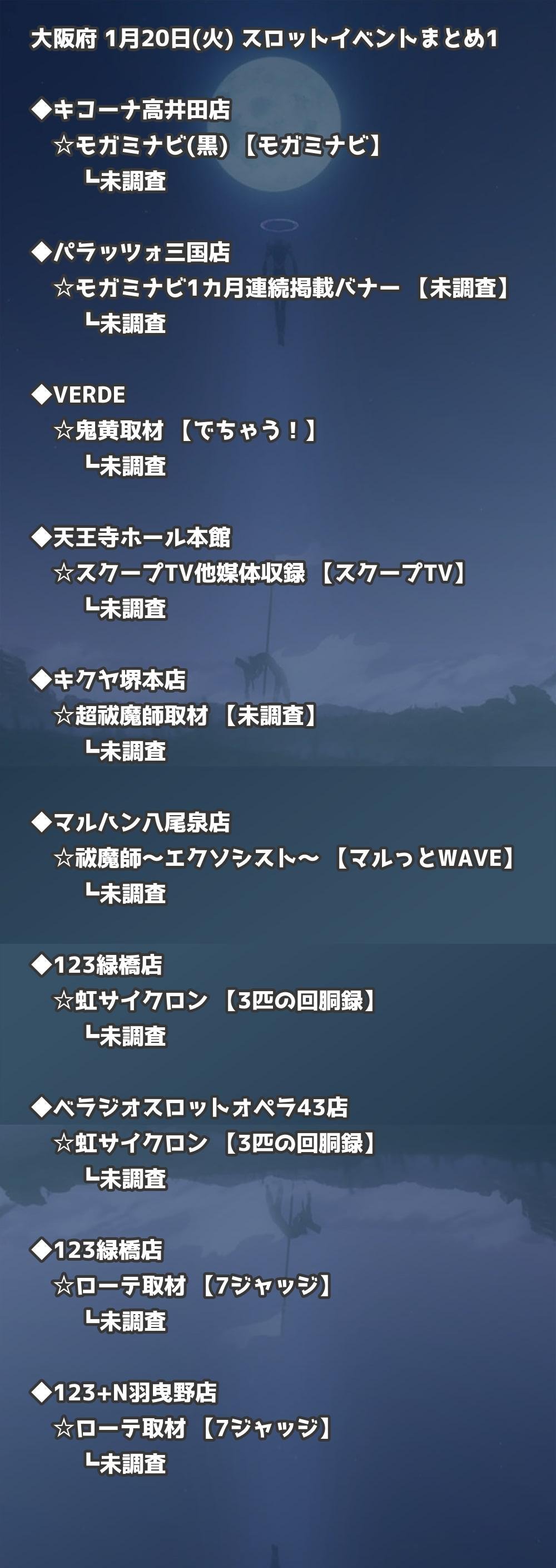 📊 大阪府 1月20日(火) 勝てるパチンコ・スロット取材店舗一覧|おすすめ順