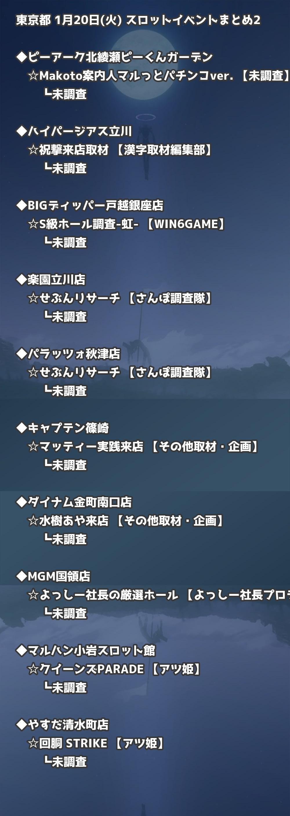 【東京都】1月20日(火) パチンコホールイベント取材まとめ記事です。