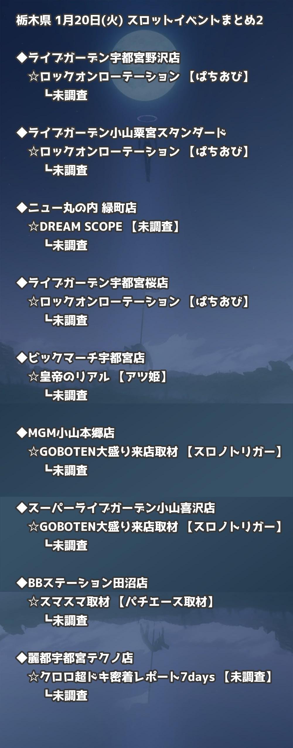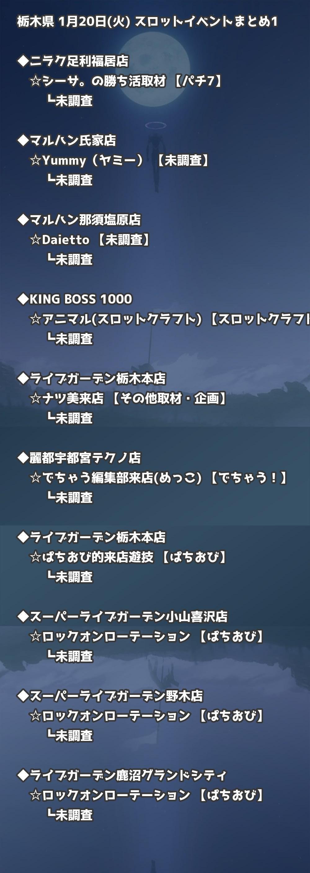 【栃木県】1月20日(火) パチンコホールイベント取材まとめ記事です。