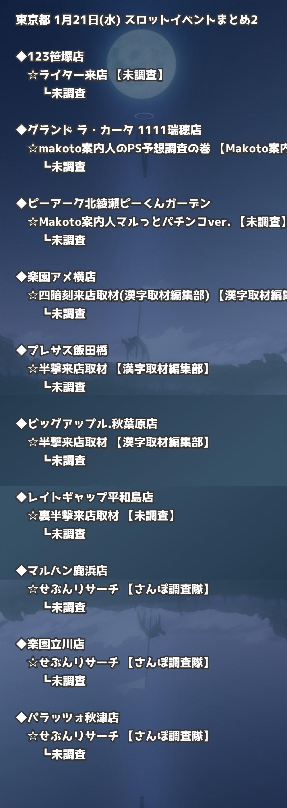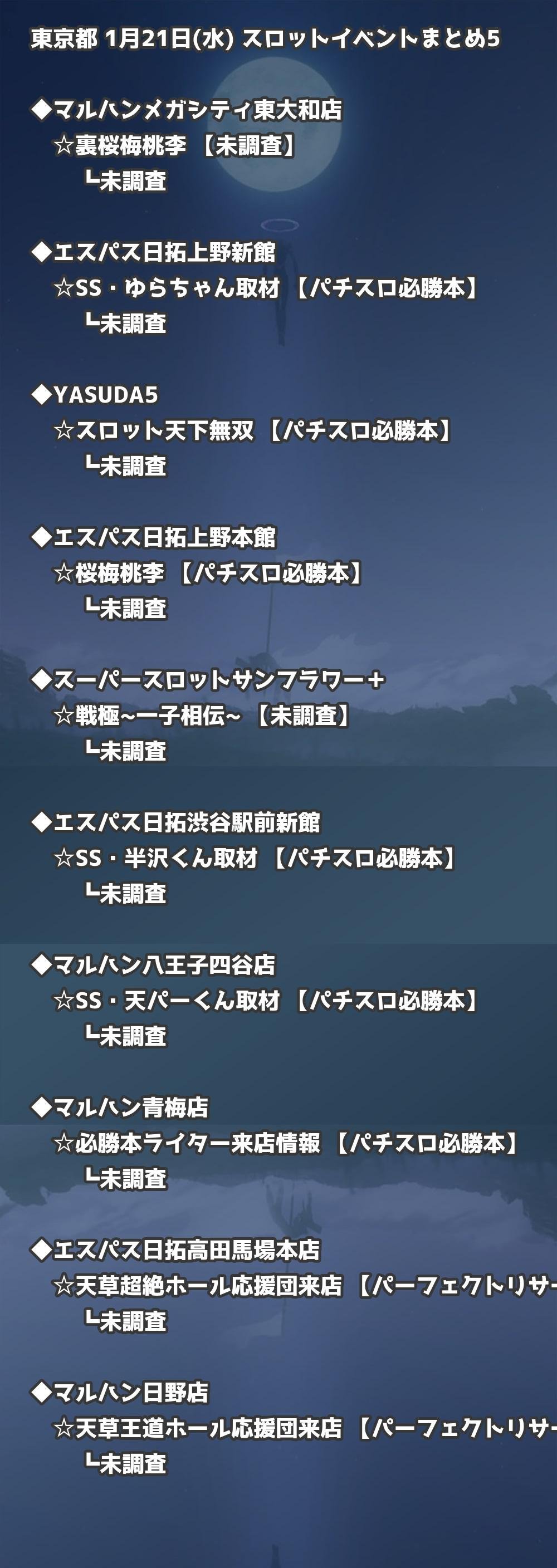 📊 東京都 1月21日(水) 勝てるパチンコ・スロット取材店舗一覧|おすすめ順