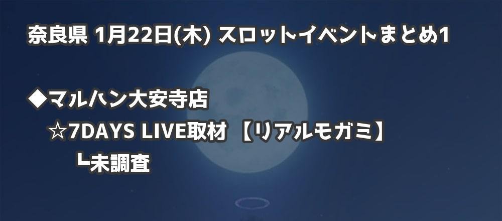 【奈良県】1月22日(木) パチンコホールイベント取材まとめ記事です。