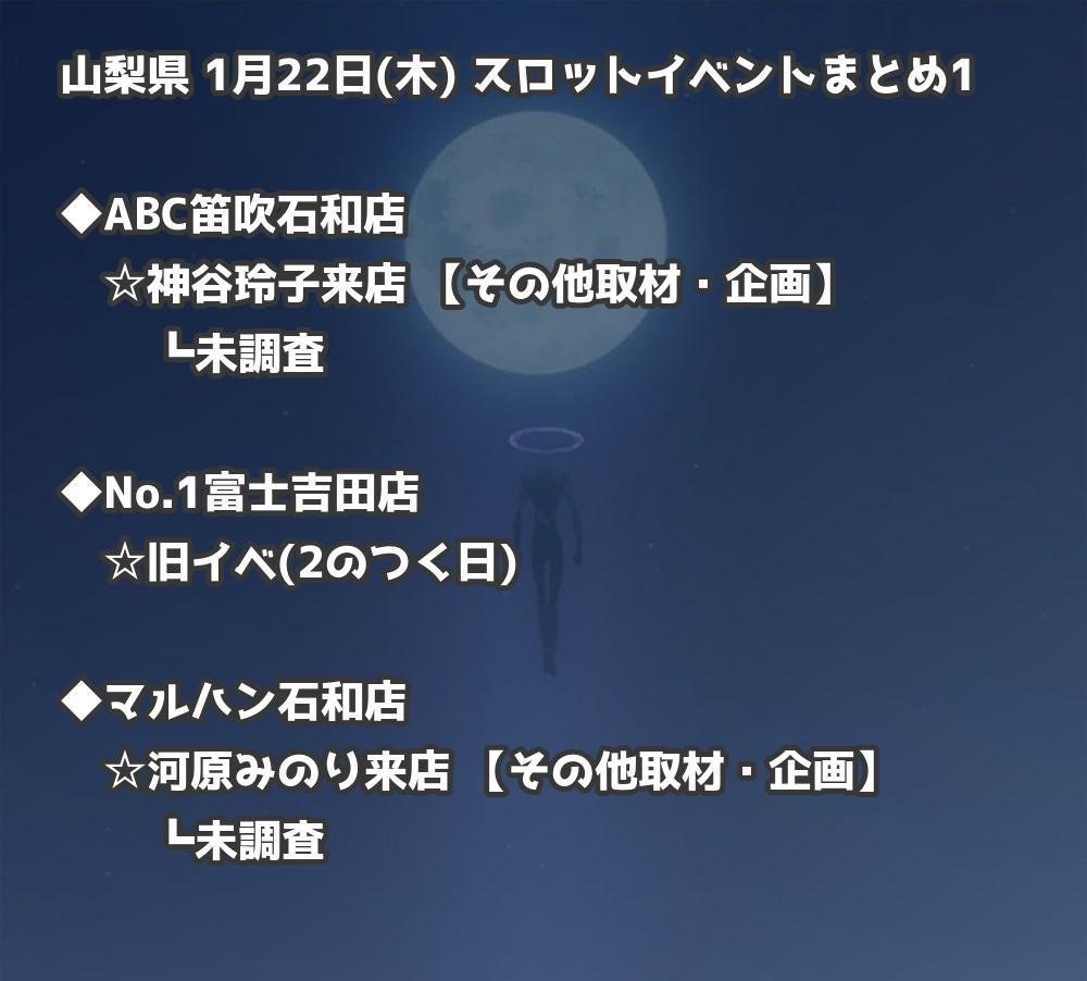 📊 山梨県 1月22日(木) 勝てるパチンコ・スロット取材店舗一覧|おすすめ順
