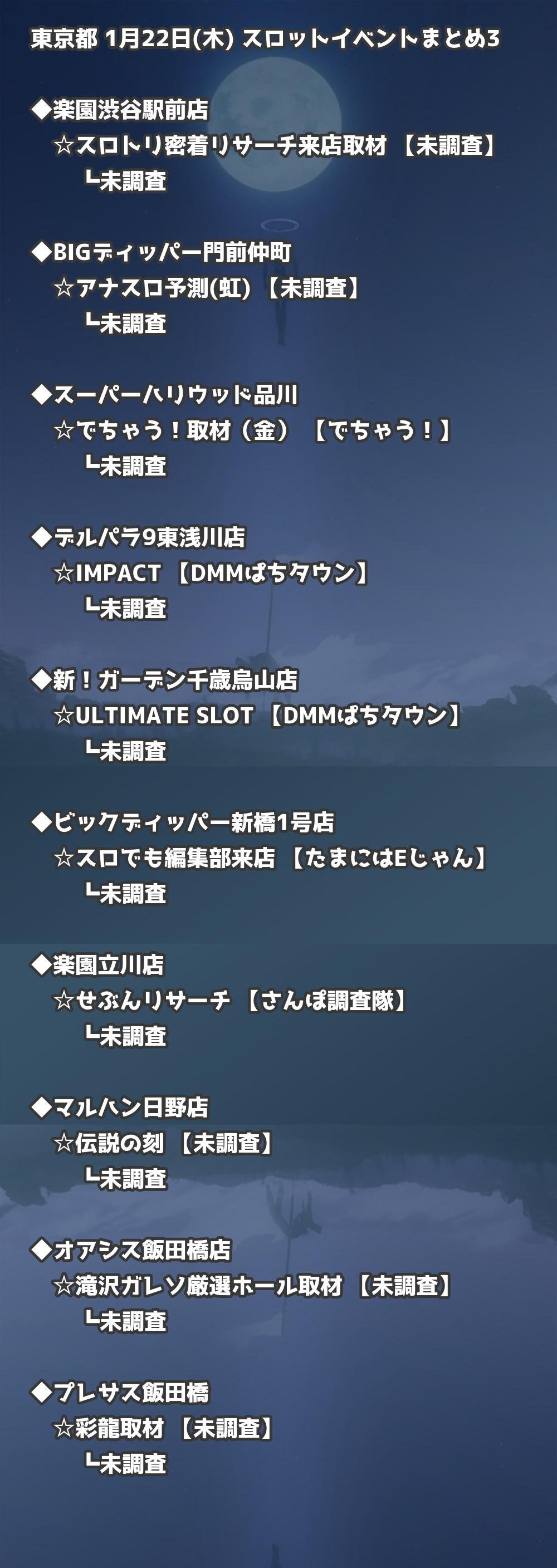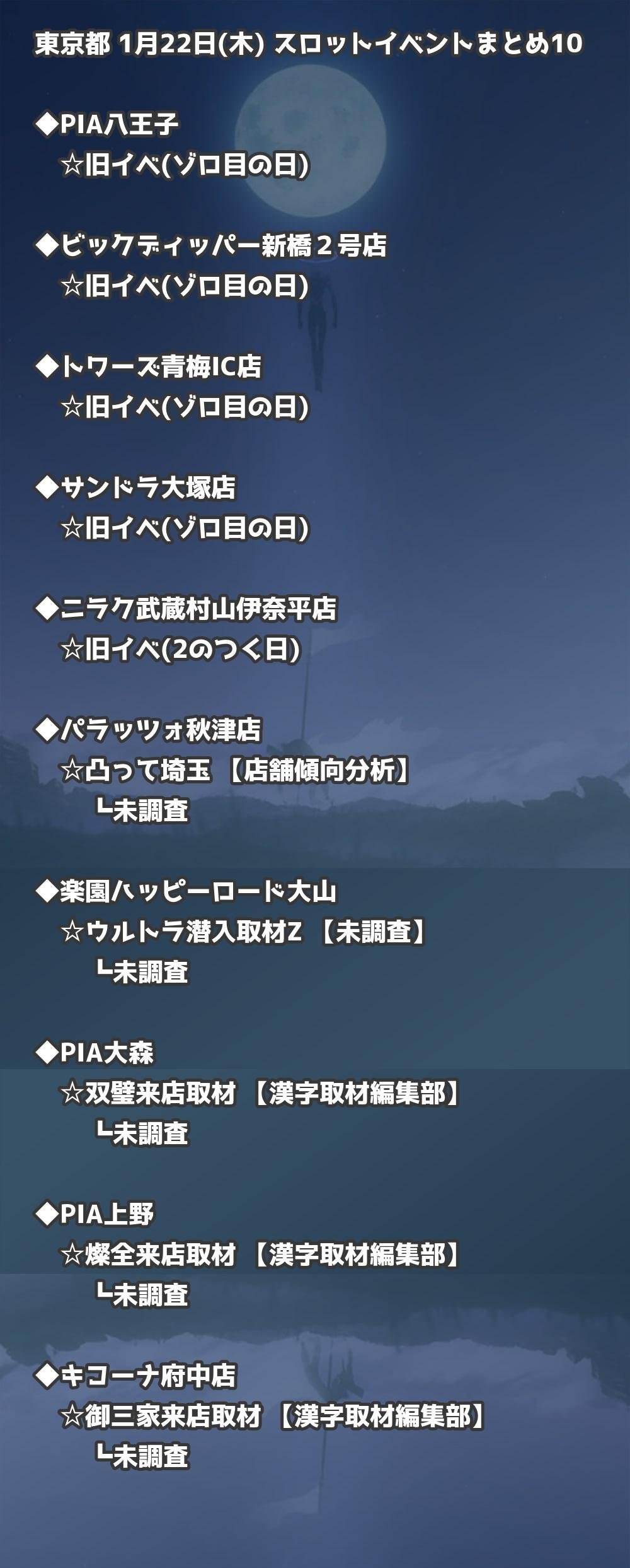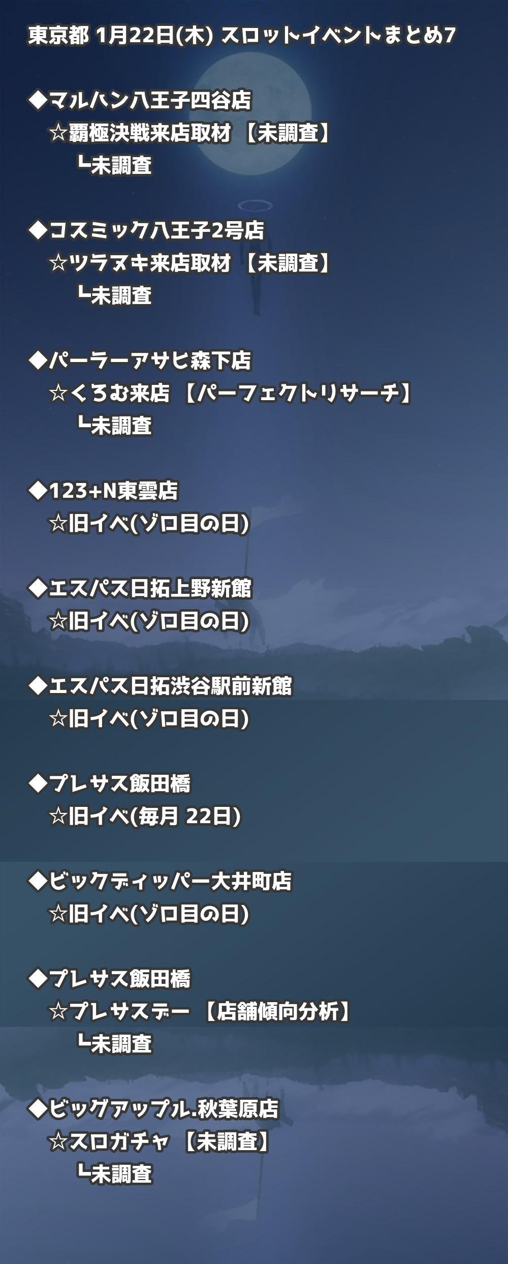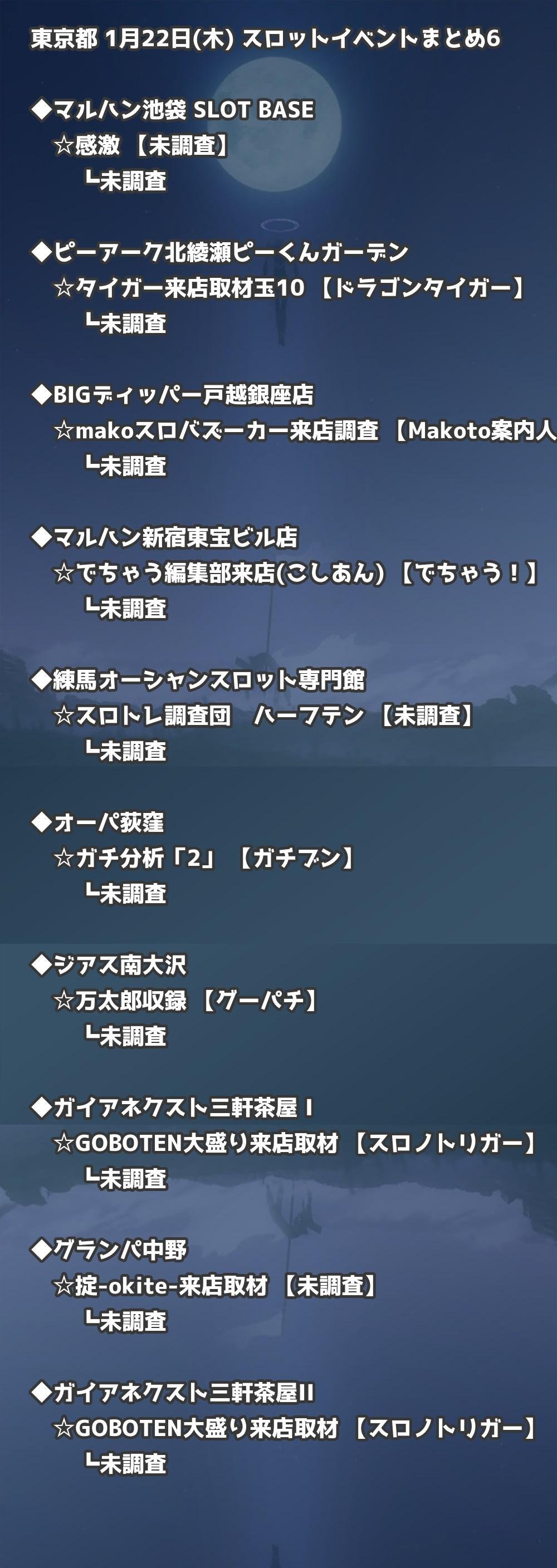 ※店舗結果掲載済 【東京】1月22日(木) 今日のスロット・パチンコ激熱イベント取材まとめ