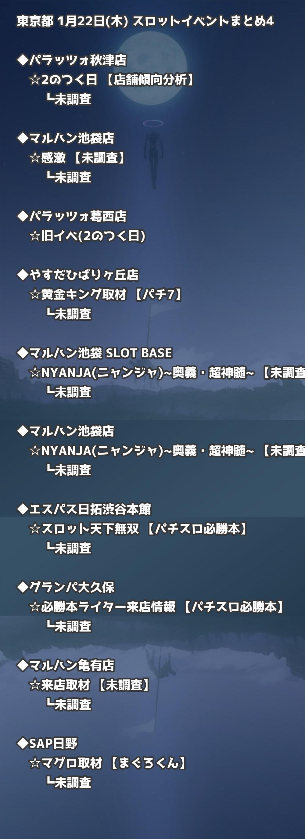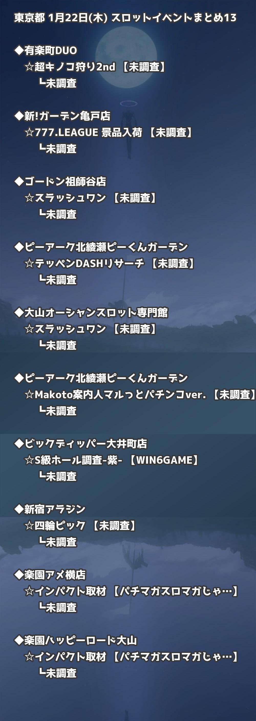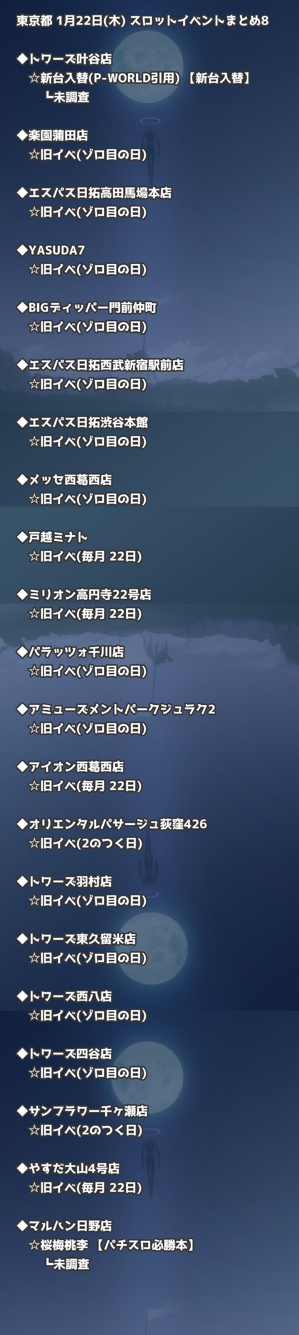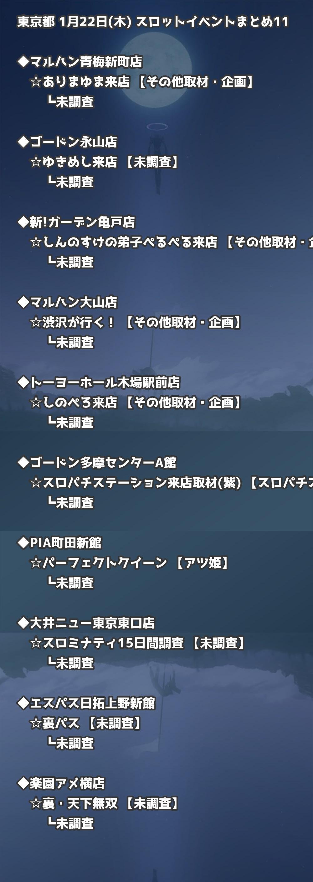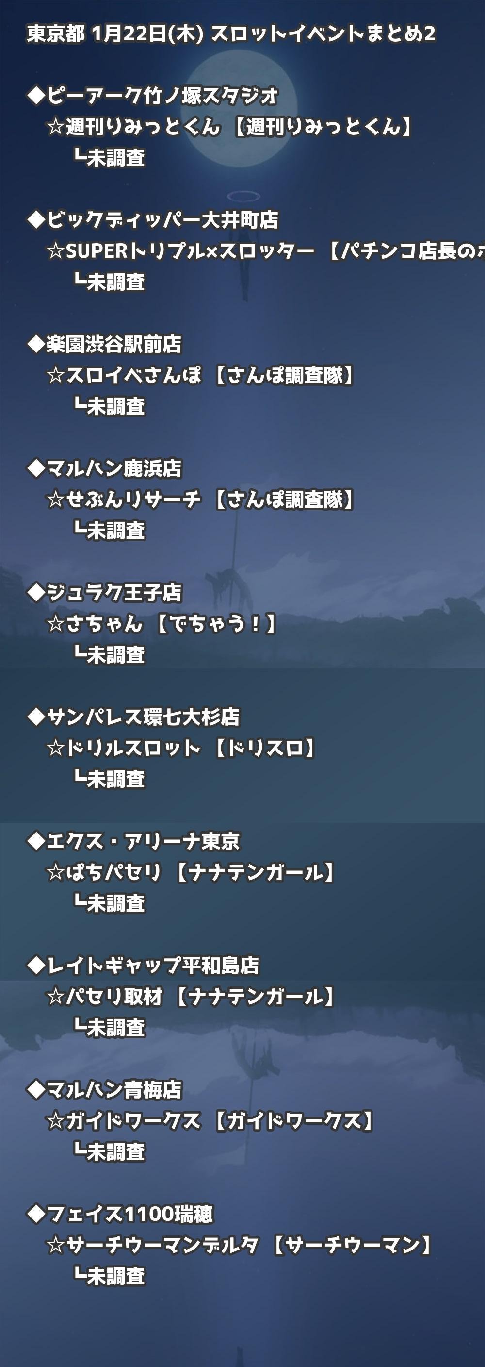 【東京都】1月22日(木) パチンコホールイベント取材まとめ記事です。