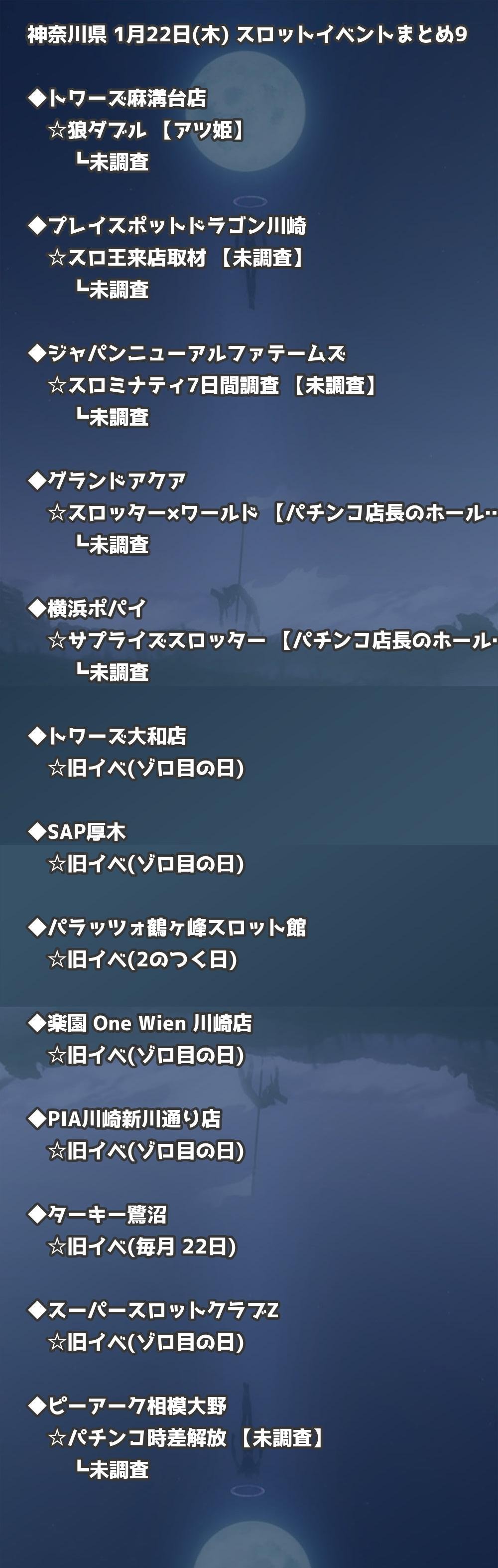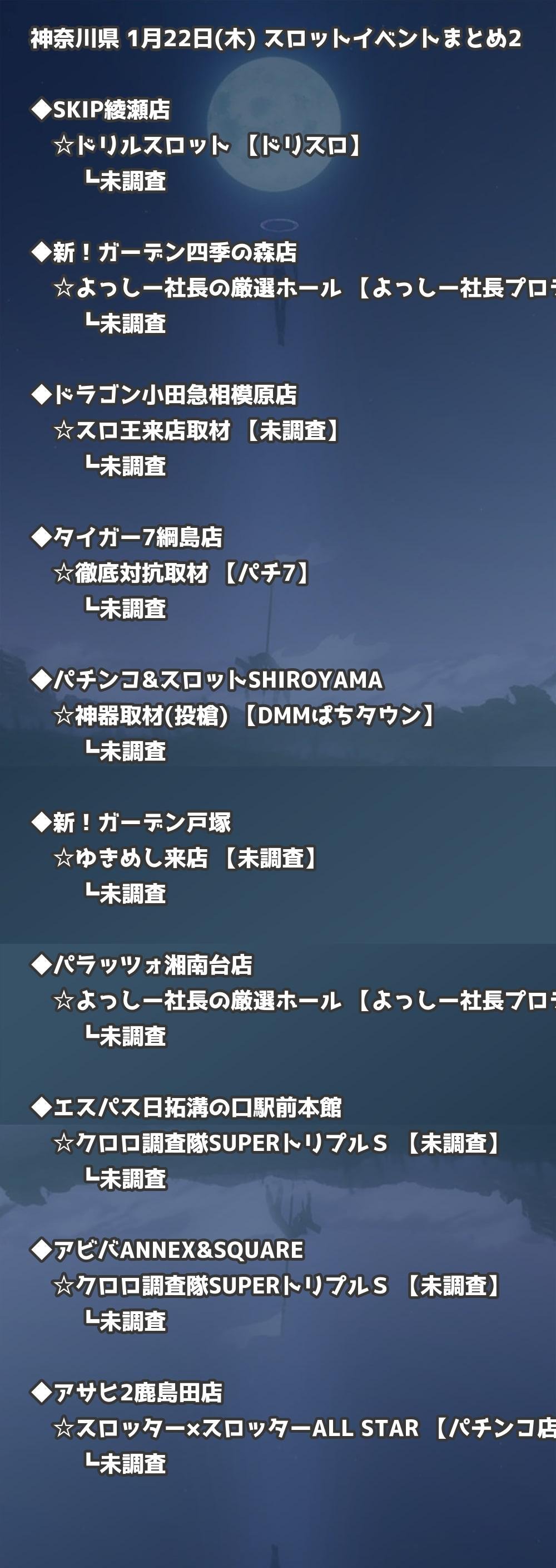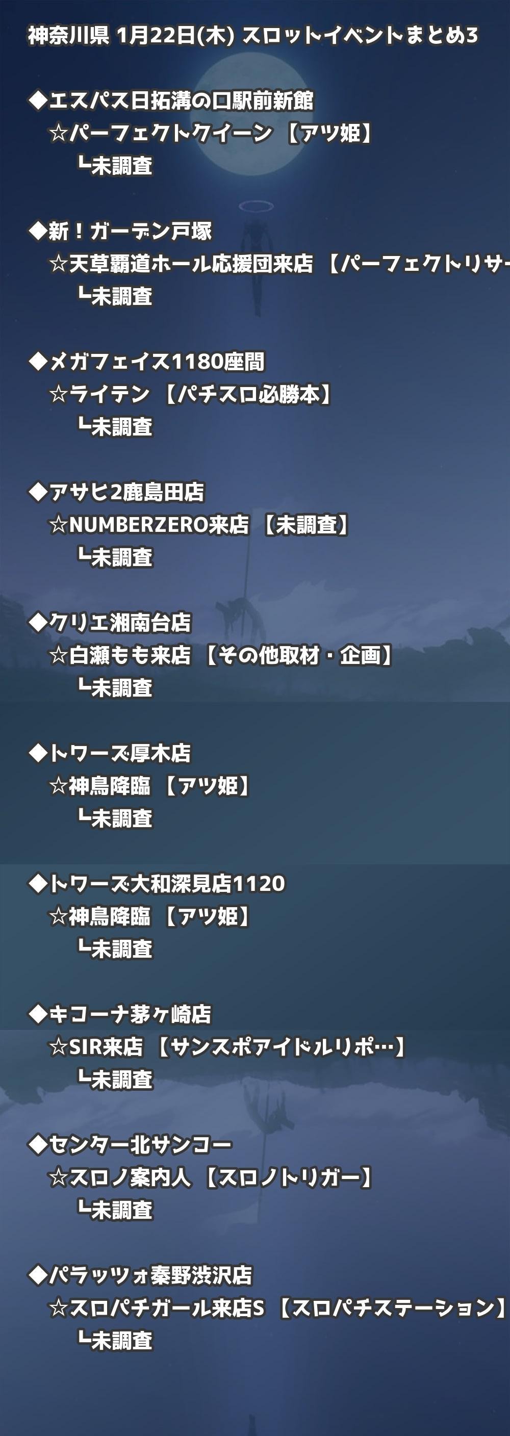 【神奈川県】1月22日(木) パチンコホールイベント取材まとめ記事です。