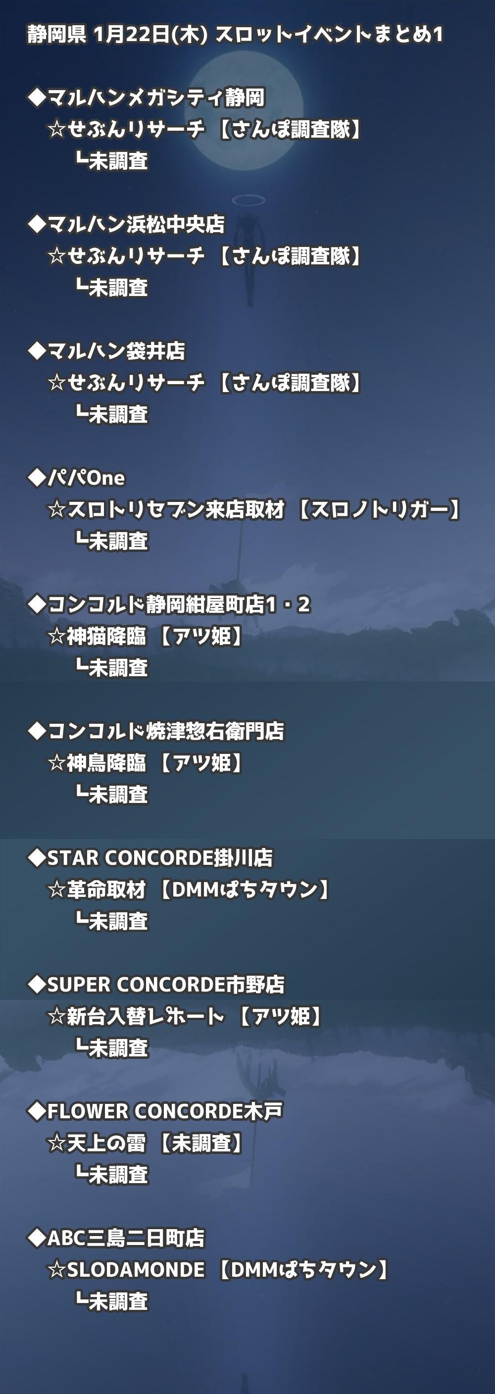 ※店舗結果掲載済 【静岡】1月22日(木) 今日のスロット・パチンコ激熱イベント取材まとめ