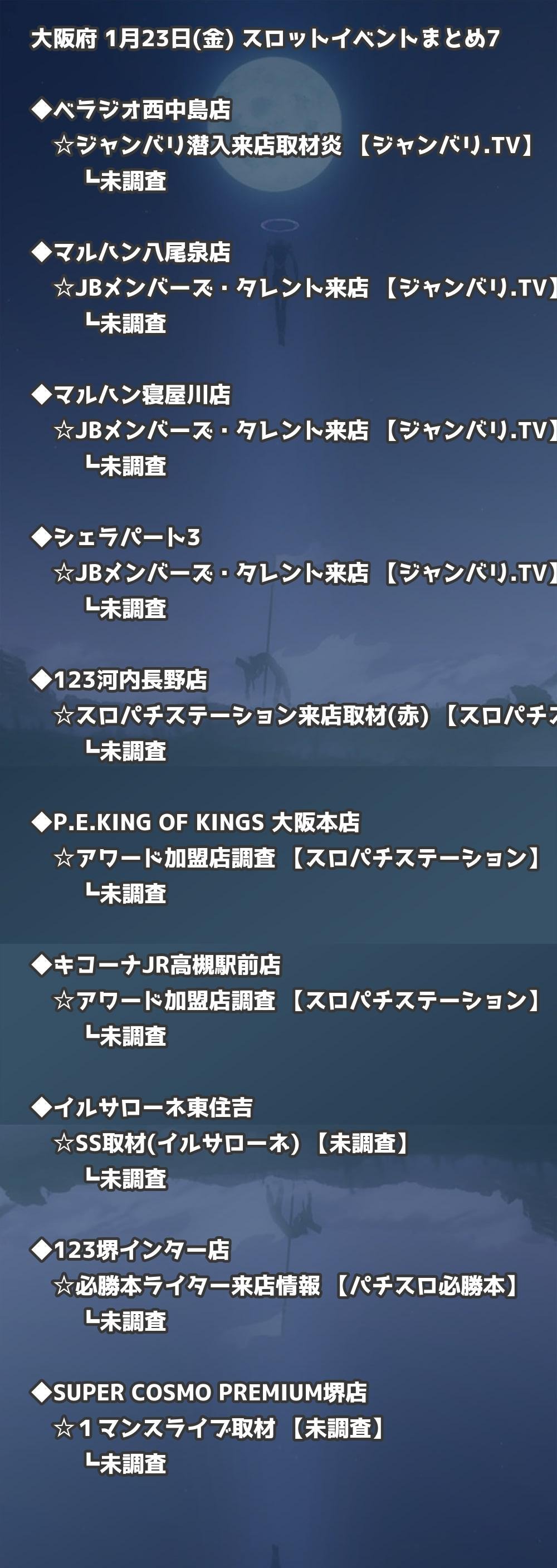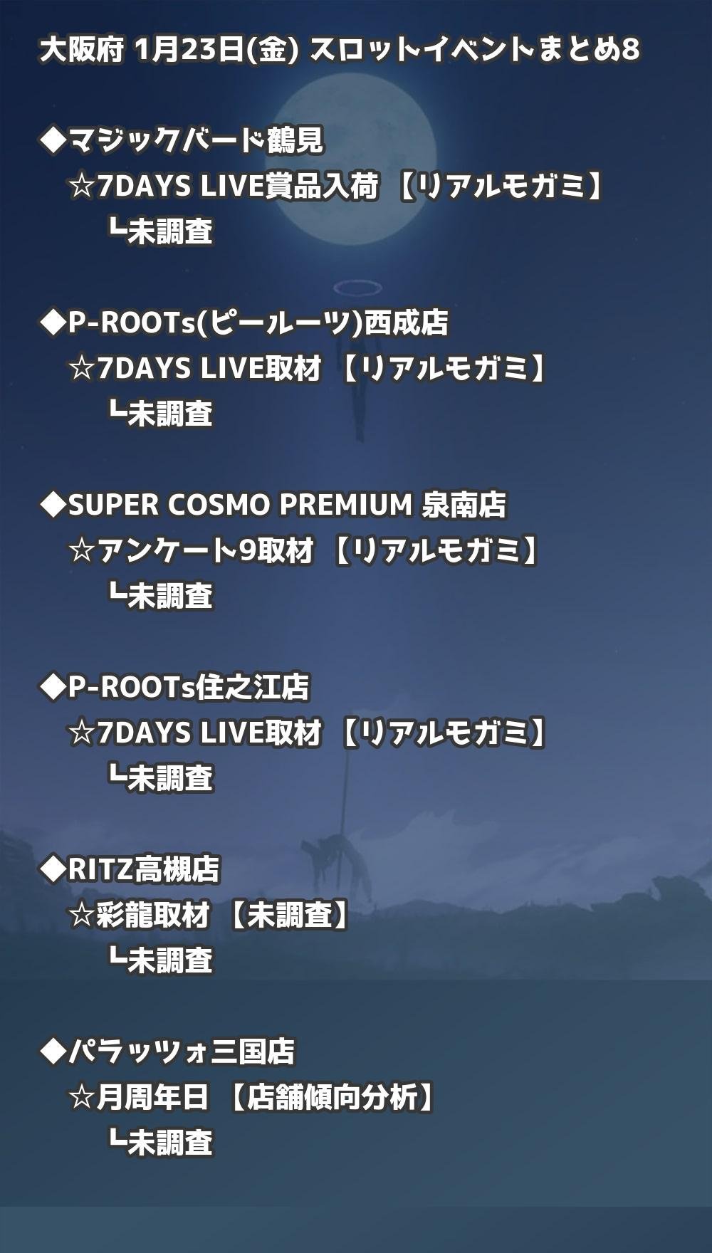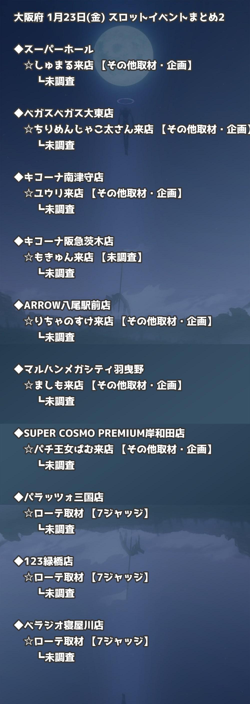 📊 大阪府 1月23日(金) 勝てるパチンコ・スロット取材店舗一覧|おすすめ順