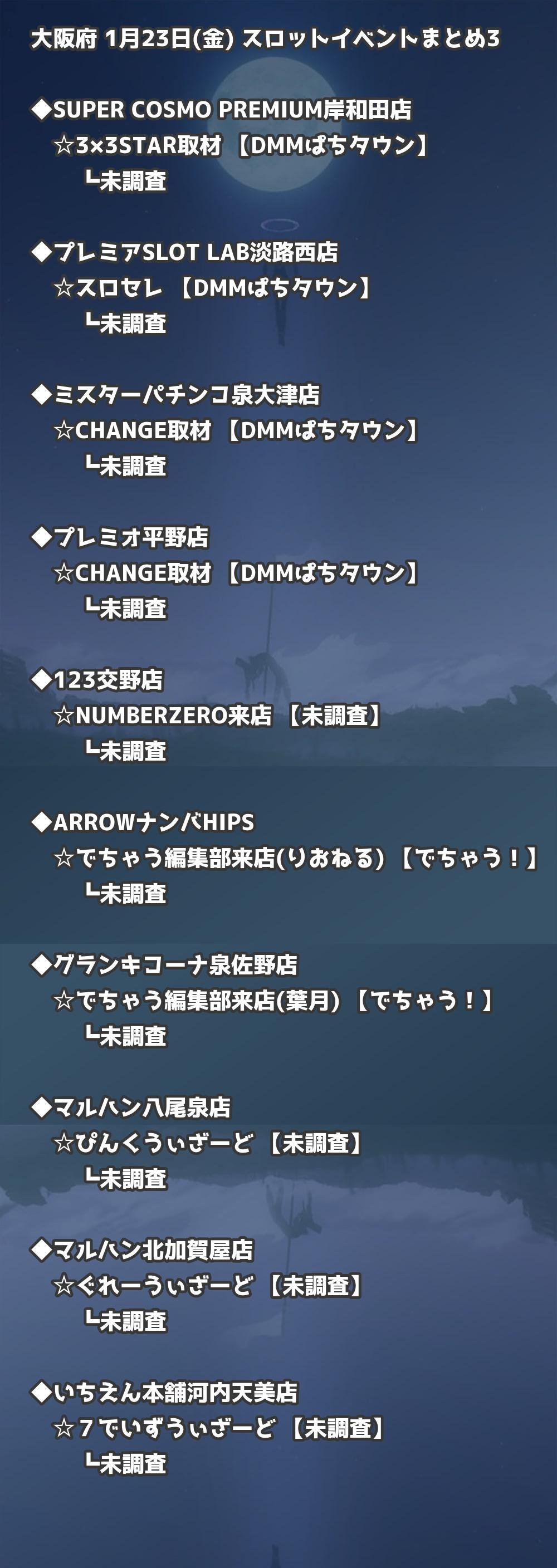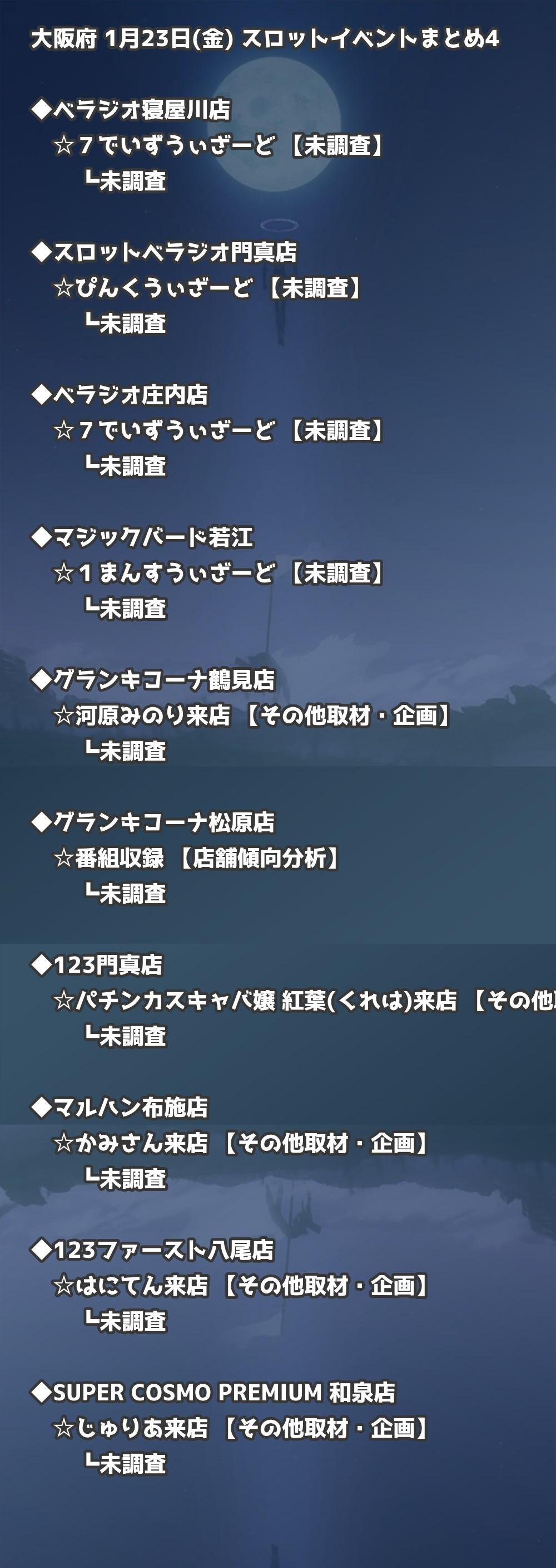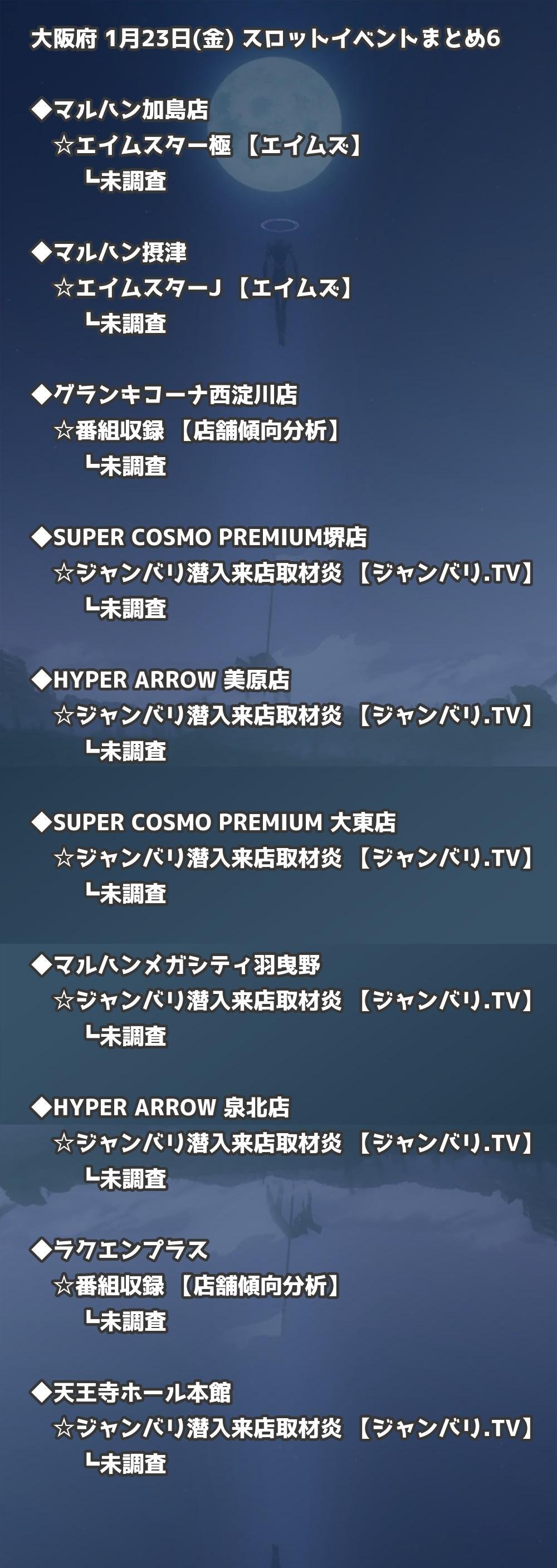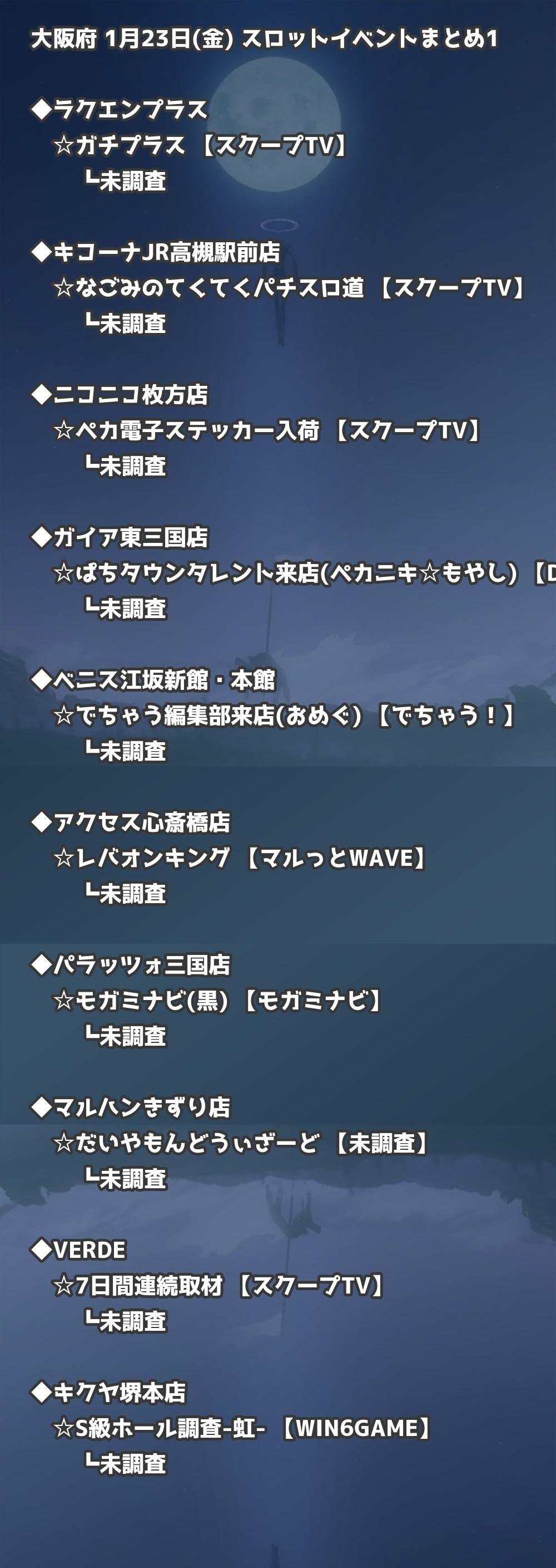 📊 大阪府 1月23日(金) 勝てるパチンコ・スロット取材店舗一覧|おすすめ順