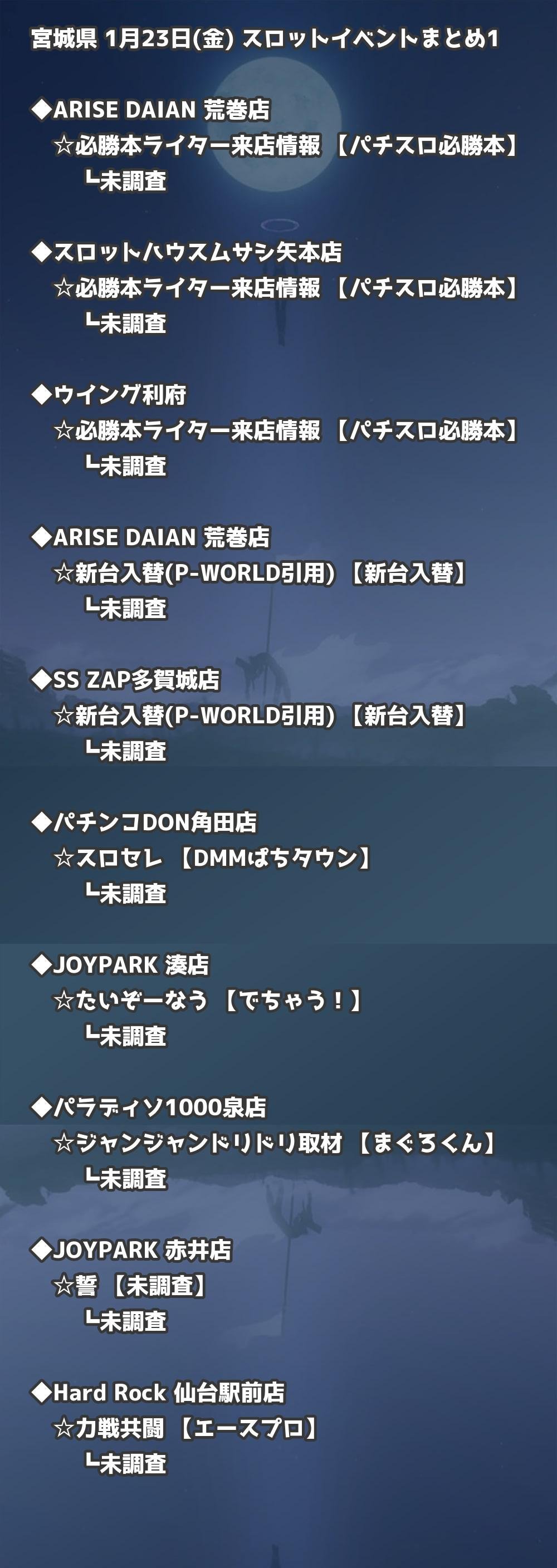 【宮城県】1月23日(金) パチンコホールイベント取材まとめ記事です。