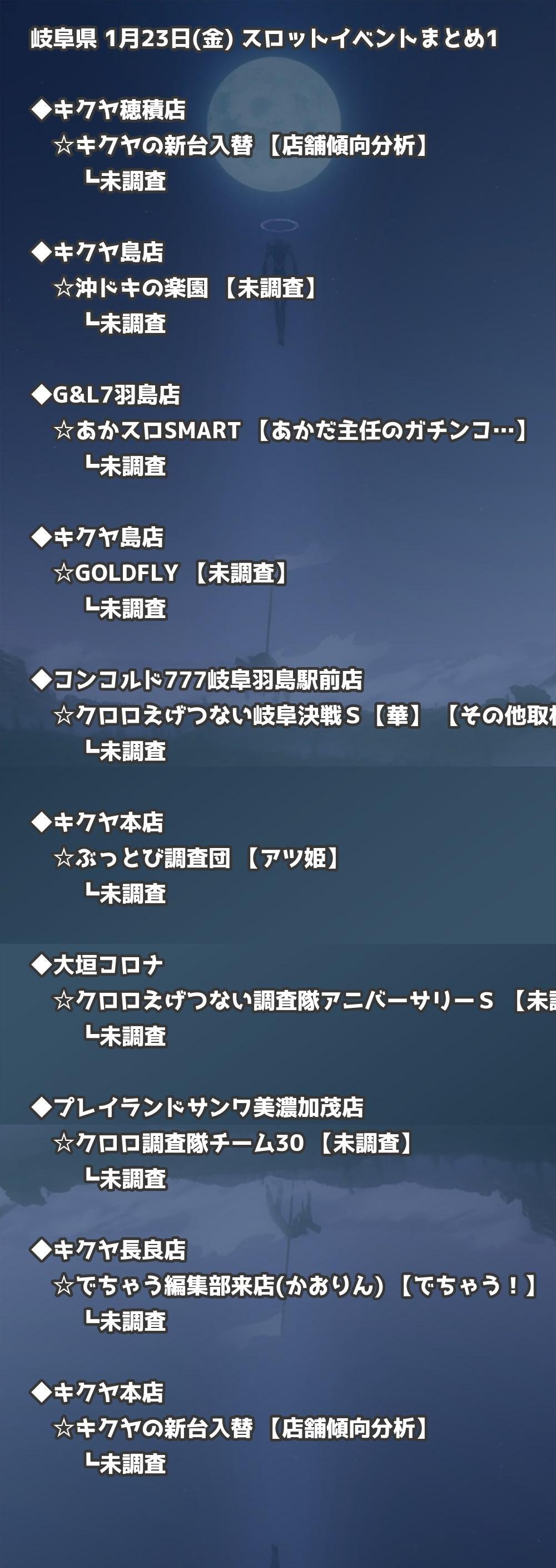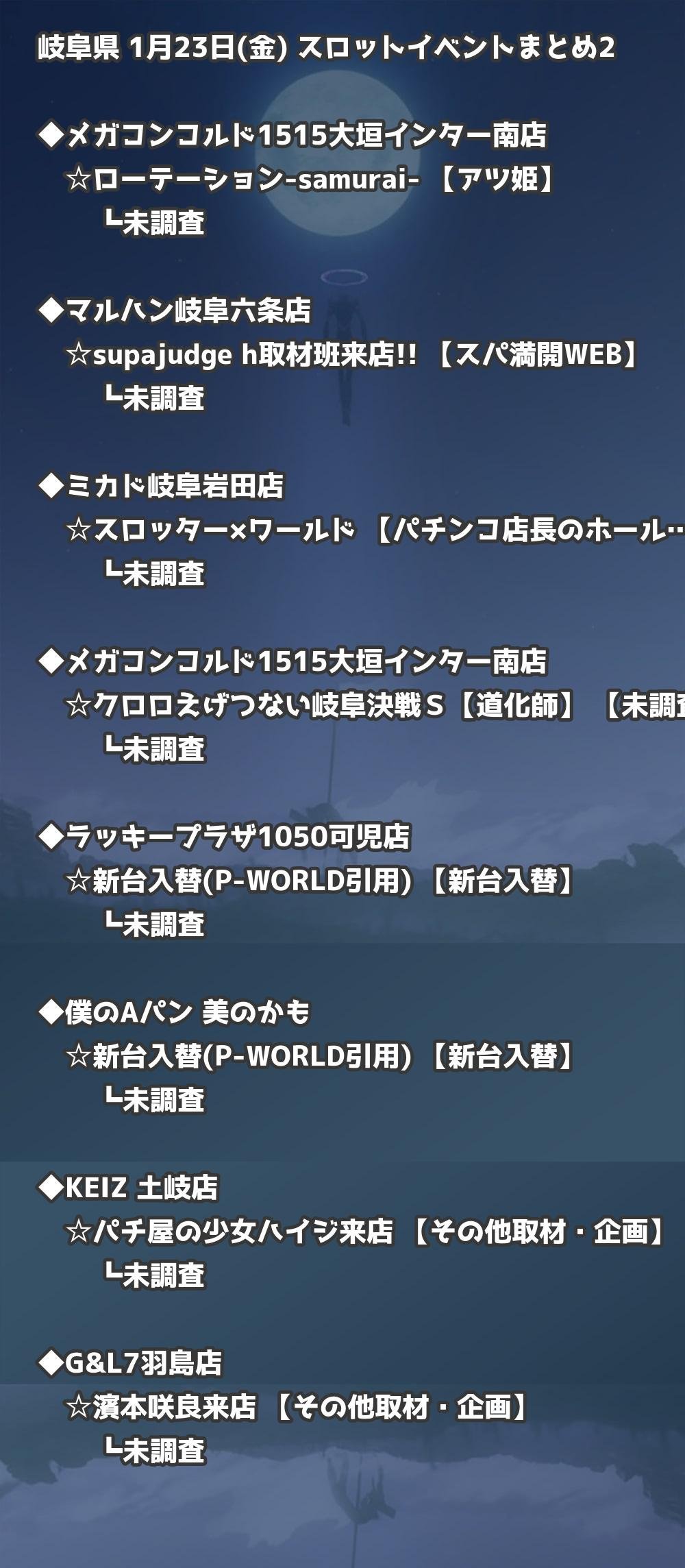 📊 岐阜県 1月23日(金) 勝てるパチンコ・スロット取材店舗一覧|おすすめ順