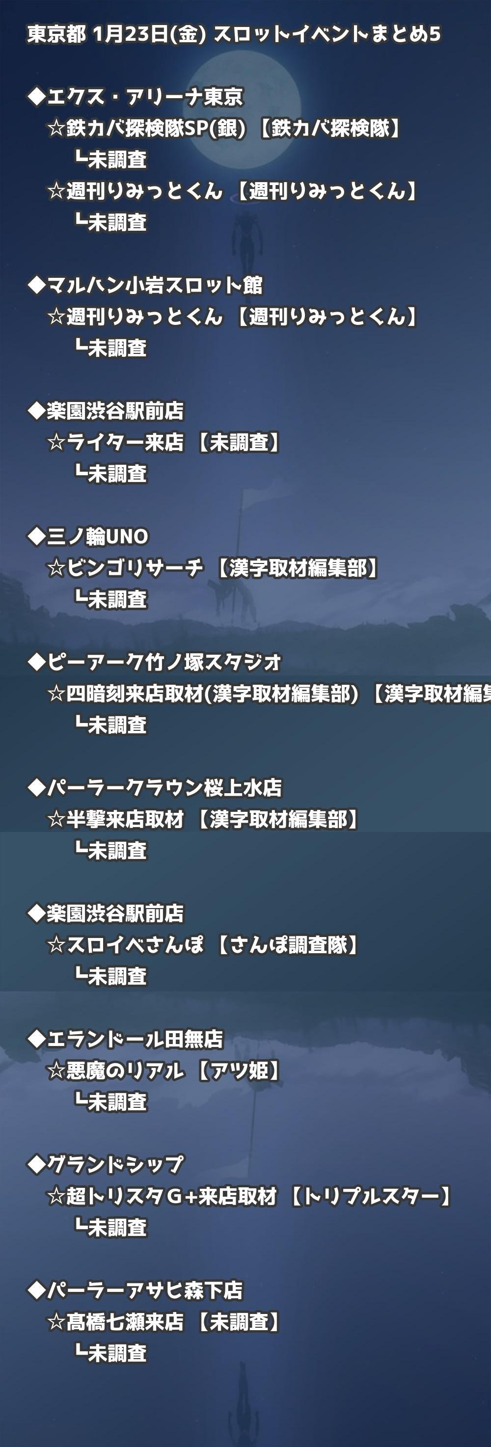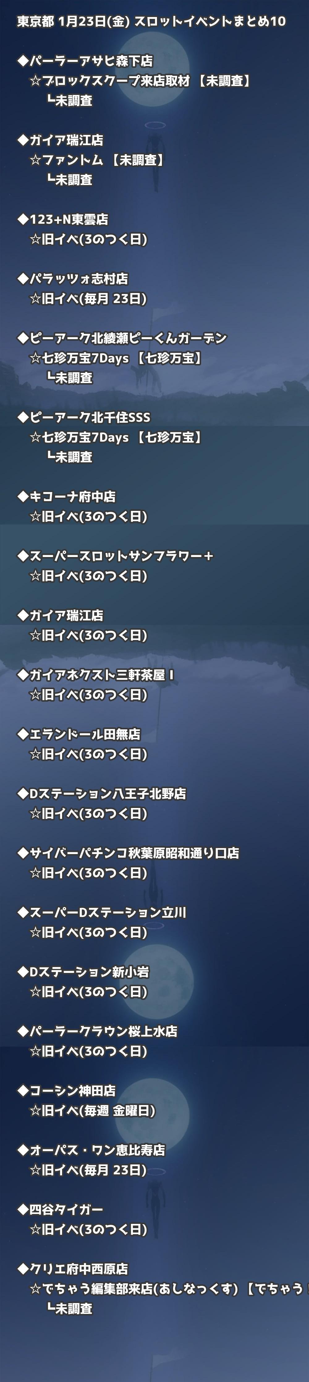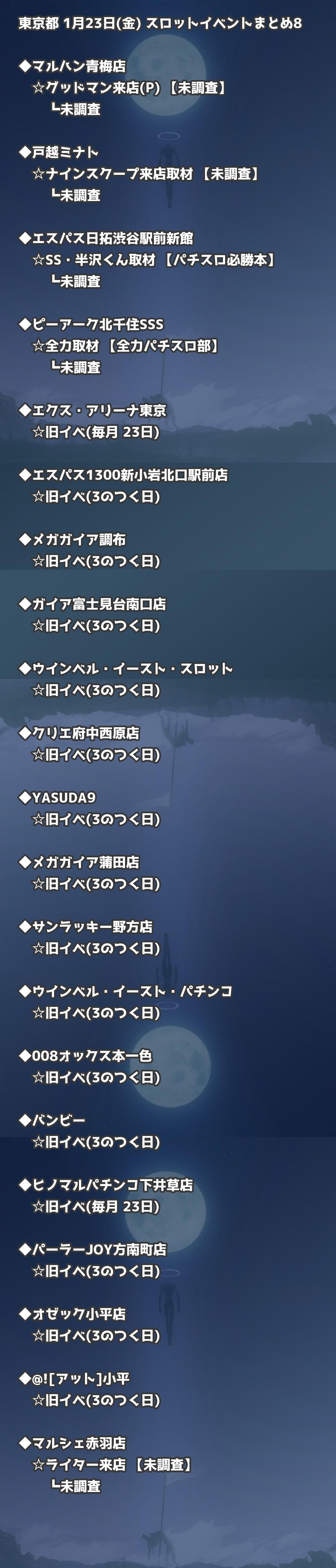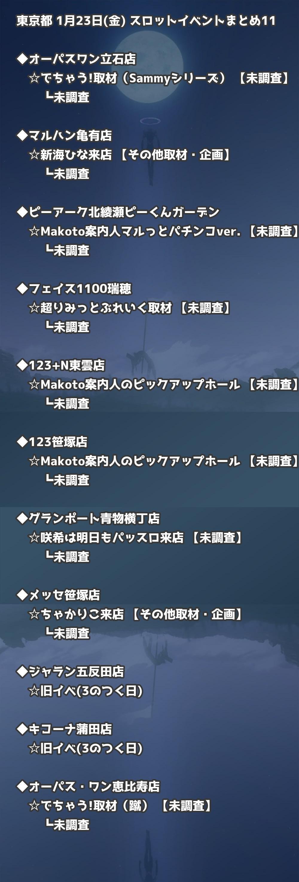 【東京都】1月23日(金) パチンコホールイベント取材まとめ記事です。