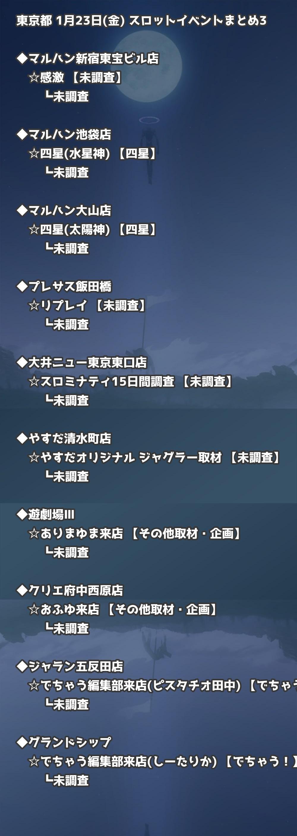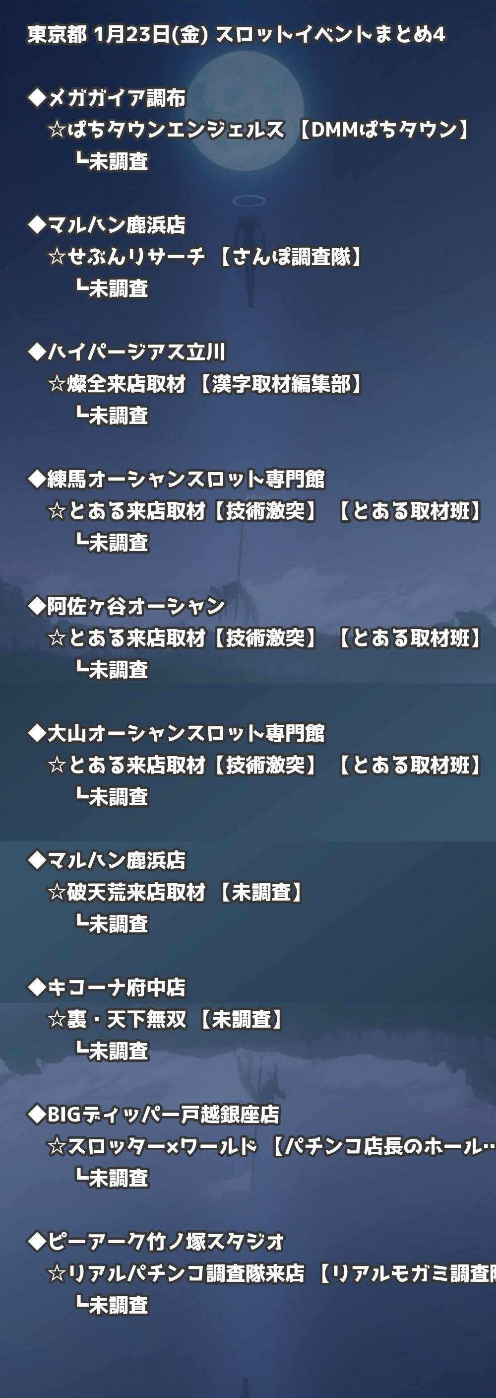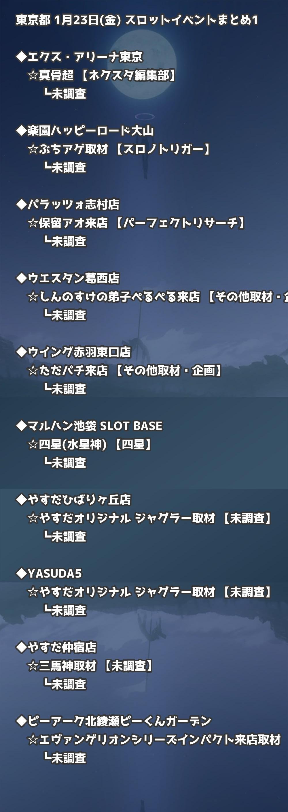 📊 東京都 1月23日(金) 勝てるパチンコ・スロット取材店舗一覧|おすすめ順
