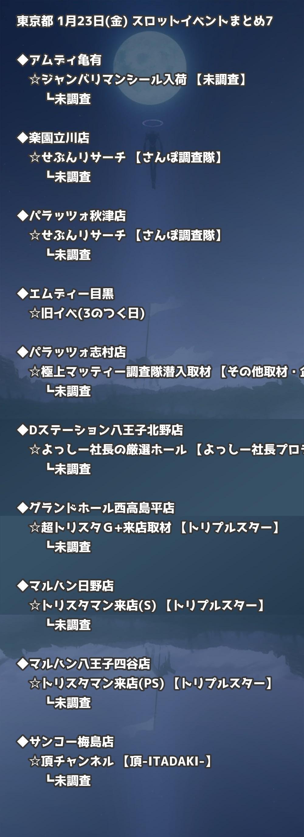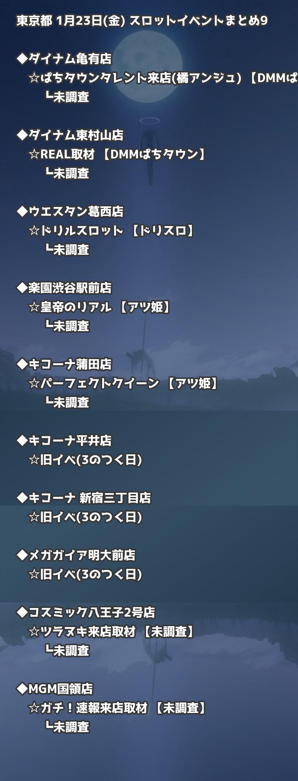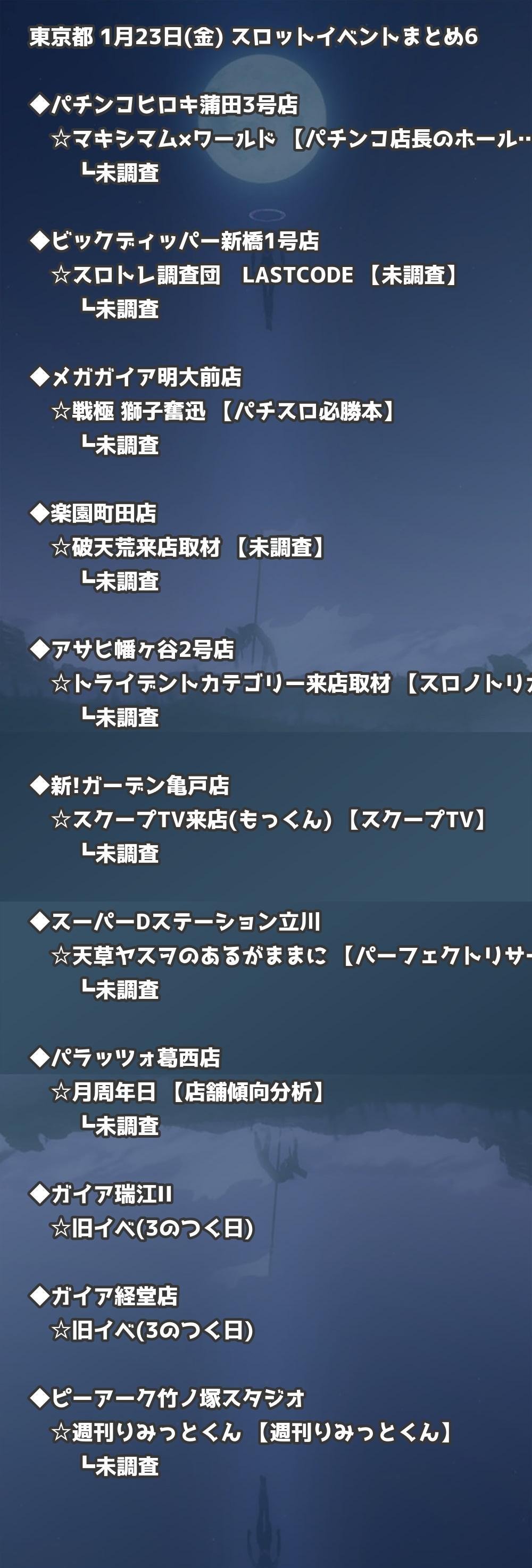 📊 東京都 1月23日(金) 勝てるパチンコ・スロット取材店舗一覧|おすすめ順